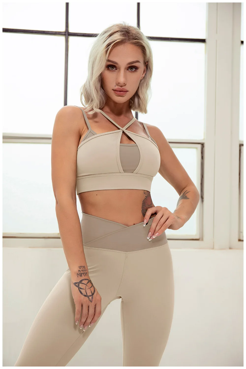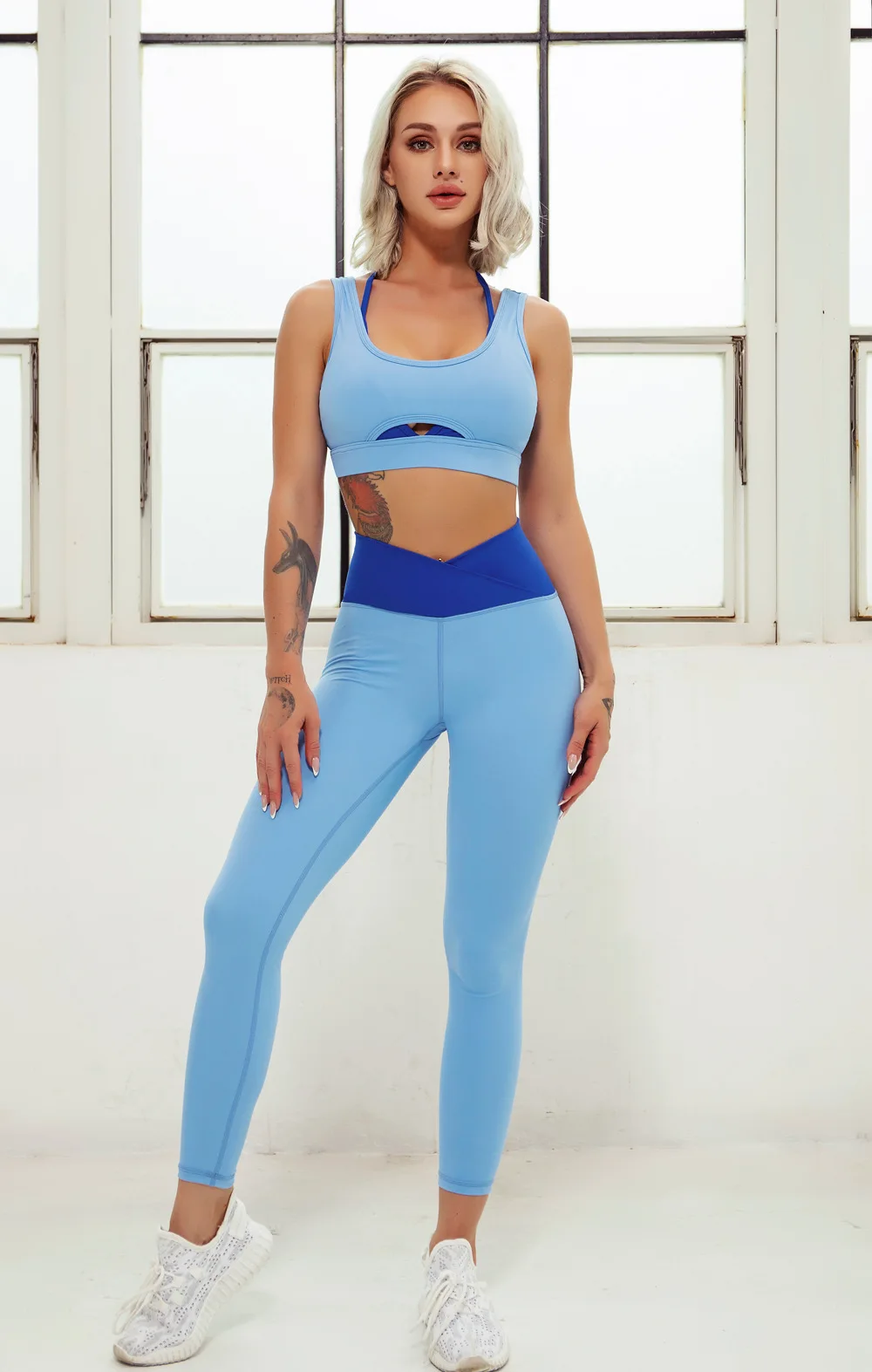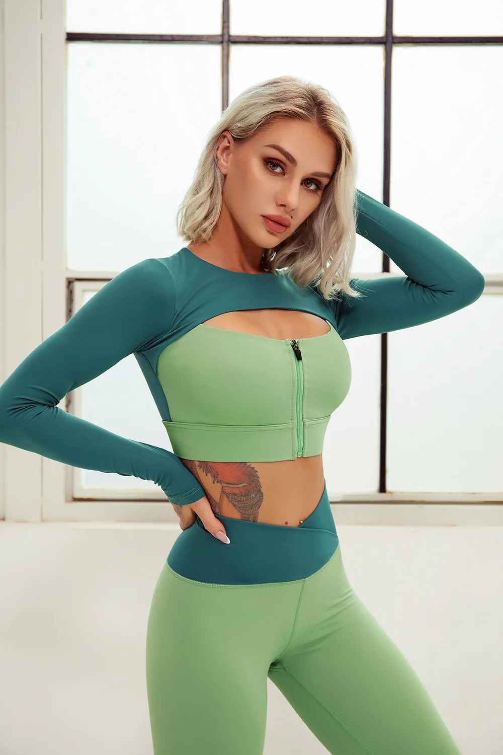 Комплект из двух предметов для йоги и спортзала, одежда для тренировок для женщин, спортивная одежда, одежда для активного отдыха, 2022, костюм для фитнеса, лайкра, синий, хаки, зеленый