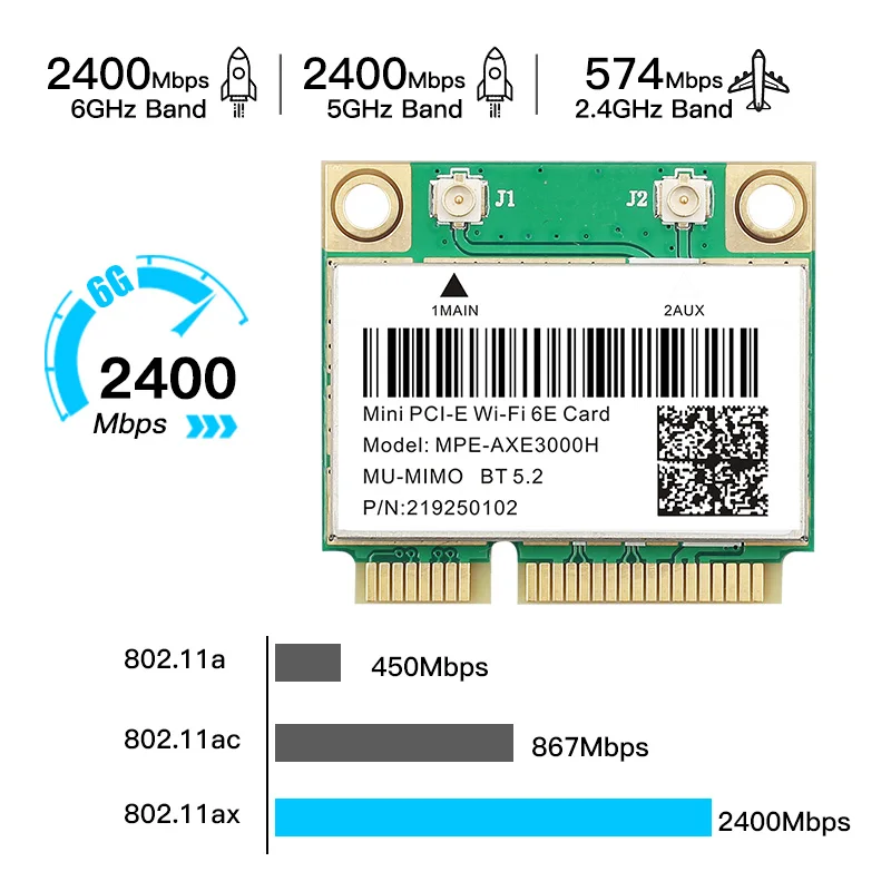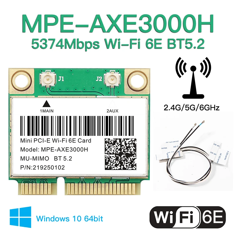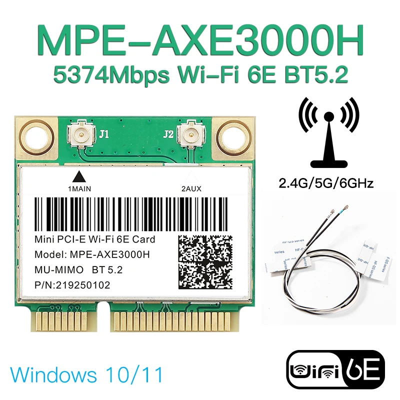 Трехдиапазонная беспроводная сетевая карта AX210 Mini pcie Wifi 6E, 5374 Мбитс, AXE3000H BT5.2 с антенной 2,4G5G6G 802.11ax MU-MIMO Win 10