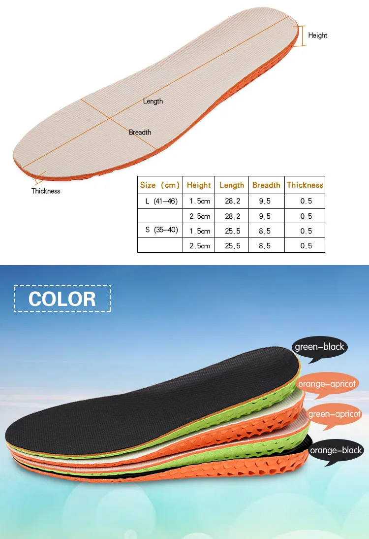 Стельки для увеличения роста для мужчин и женщин, дышащие вставки для увеличения роста обуви, 1 пара