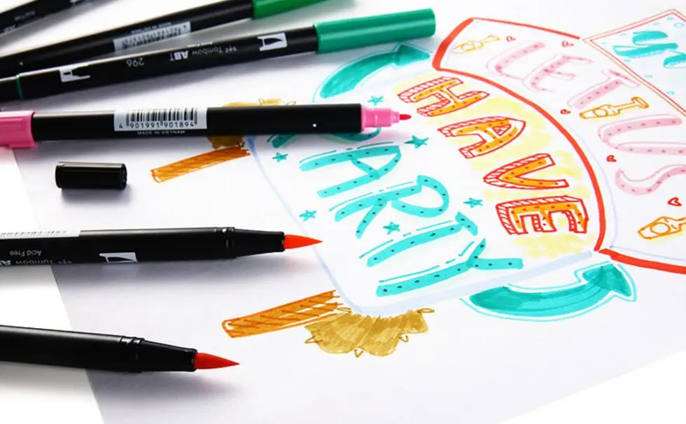 Ручка TOMBOW AB-T с двойной кисточкой, ручка для японской каллиграфии 108 цветов, профессиональная каллиграфия ABT, фломастеры для рисования акварелью