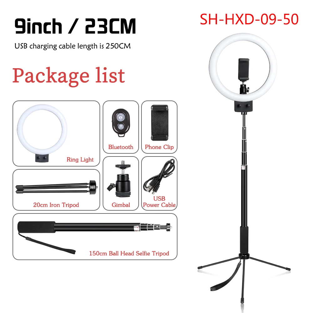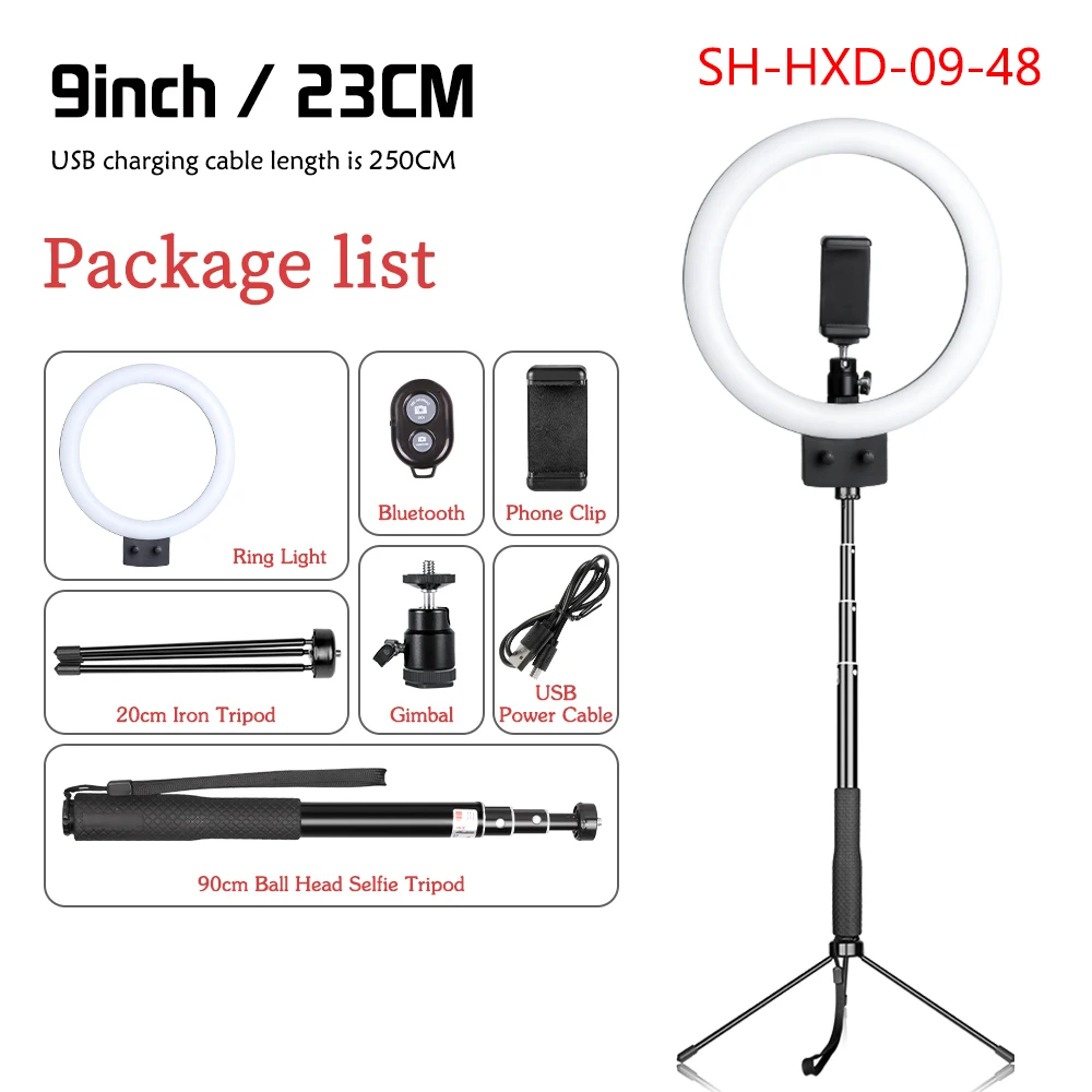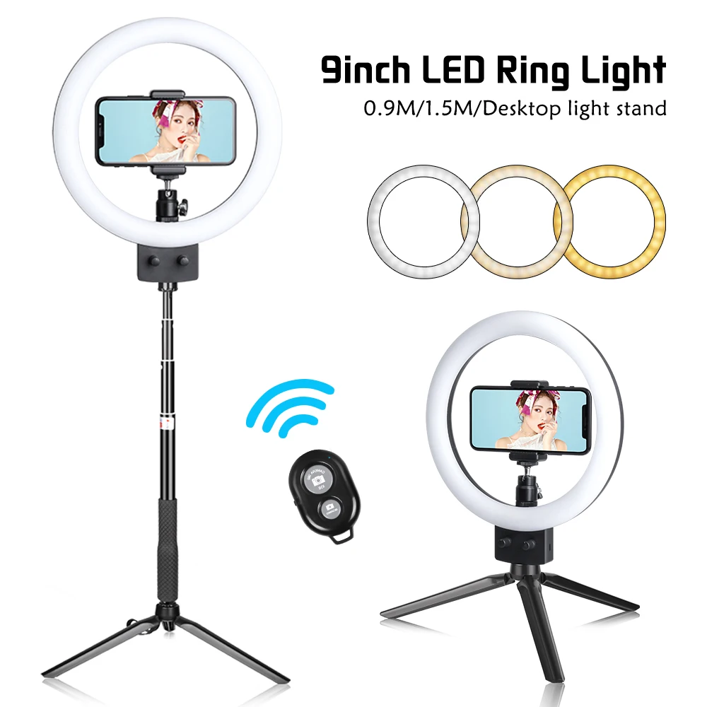 Светодиодная кольцевая лампа для селфи, студийный светильник диаметром 9 дюймов с подставкой для телефона, подходит для Youtube, нанесения макияжа