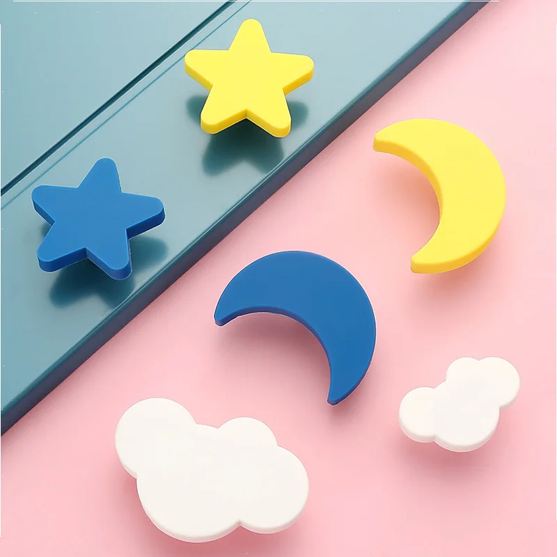 Детские резиновые дверные ручки, милые ручки розового цвета в форме сердца, звезды, месяца, облака, для кухонного шкафа, Мебельная ручка, выдвижные ящики