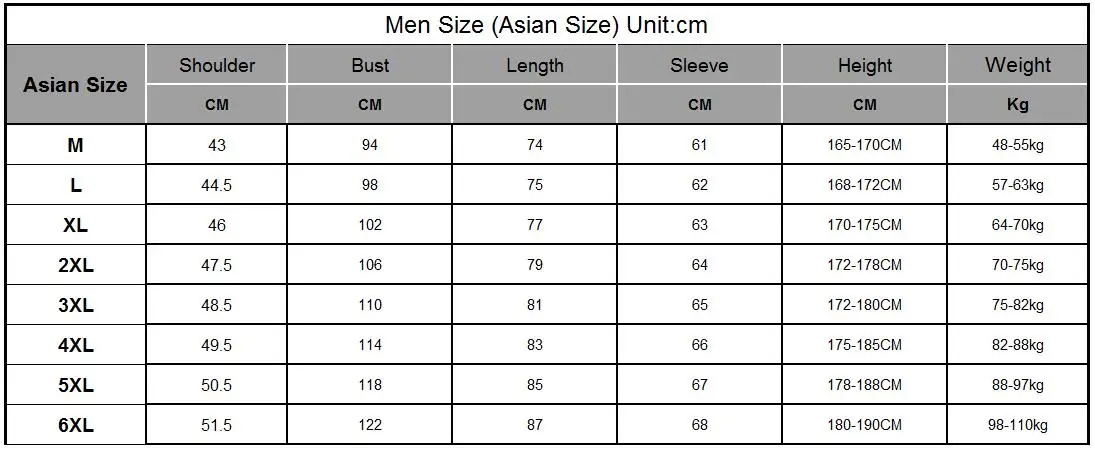 sizeM L XL 2XL 3XL 4XL 5XL 6XL