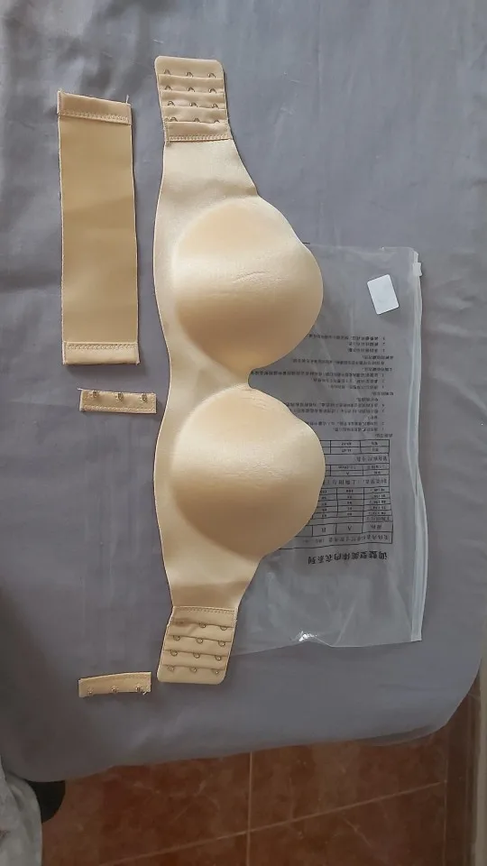 У него нет колец и набивки, это хорошо для чего-то пунктуального, но правда в том, что у него нет поддержки, если у вас достаточно груди (90C), чашки идут с одной стороны, А затем две полоски закрытия для обмена, одна из нормальной резины и одна прозрачная. По цене, я полагаю, вы не можете просить больше, и я вижу это на 100% полезно для маленьких людей. Но если у вас есть событие, и у вас большой сундук, это не поможет вам.