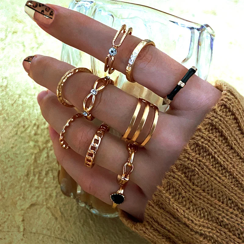Набор колец в стиле панк, простые винтажные стильные ювелирные укра...