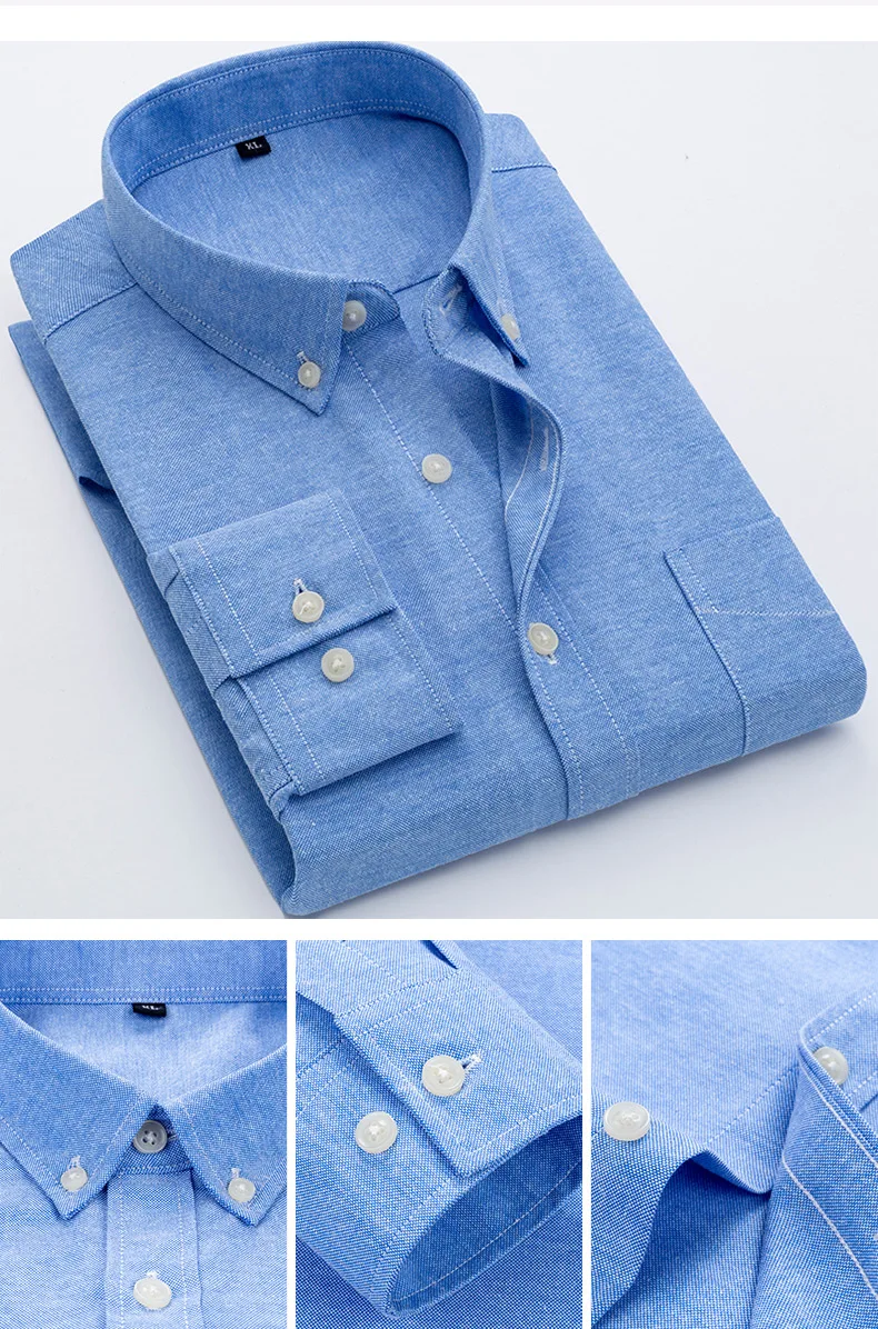 Мужская рубашка из ткани Оксфорд, с длинным рукавом, повседневная, приталенная, весна-осень, 2021