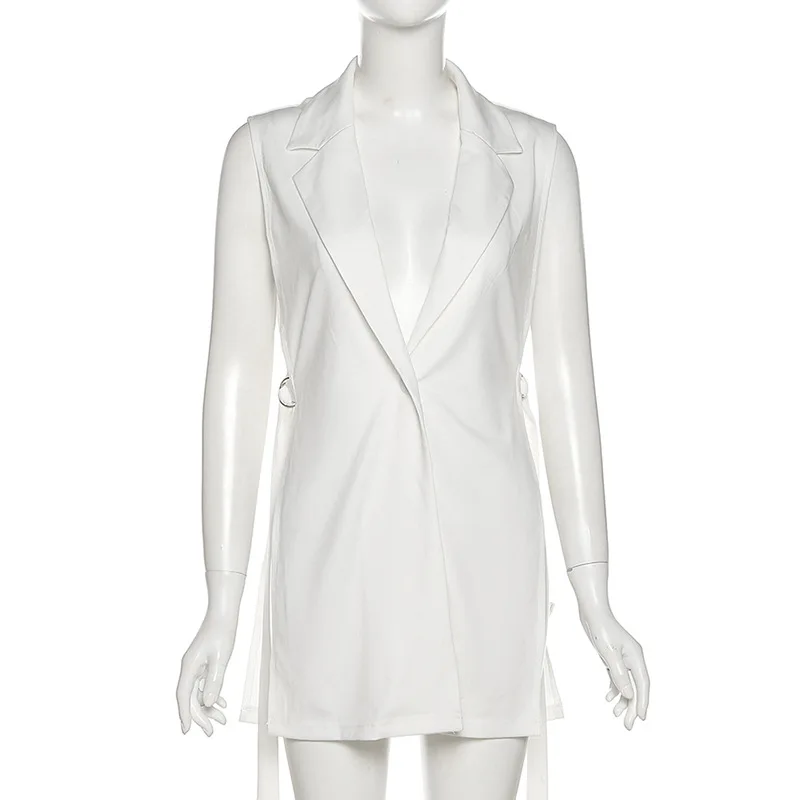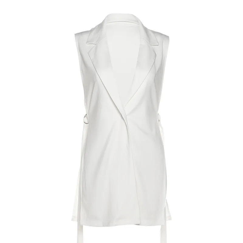 Женские однотонные блейзеры, лето-осень, пальто, Длинный свободный костюм, куртка, женские топы, новинка 2021, белые костюмы без рукавов