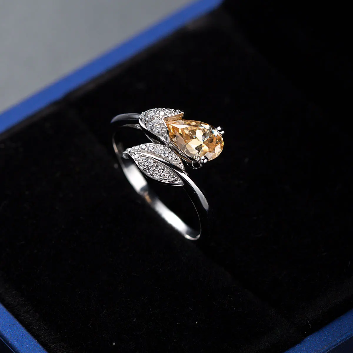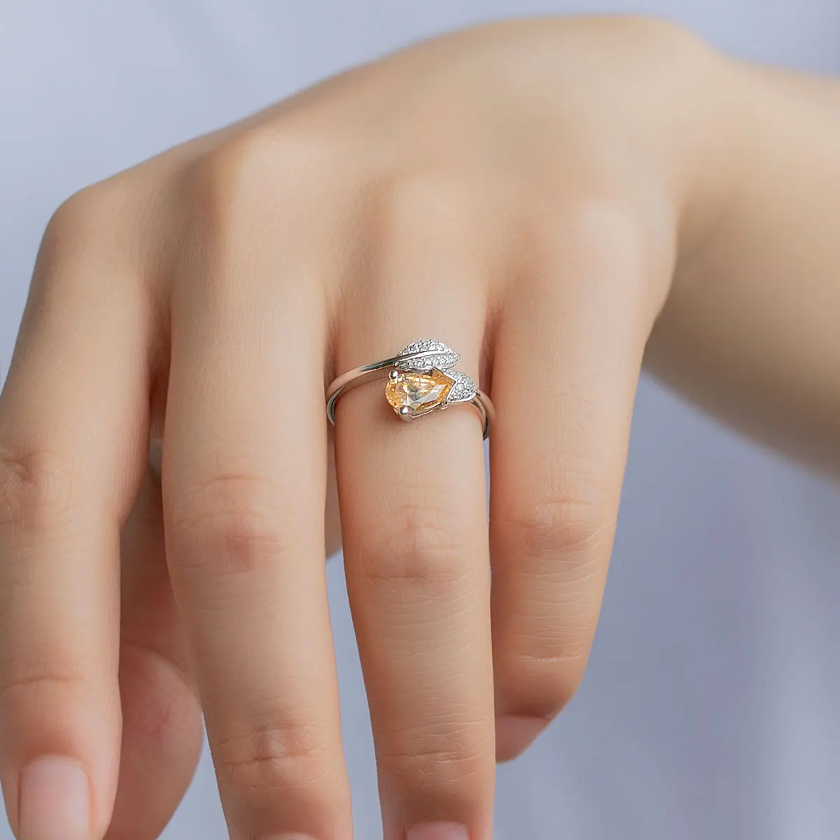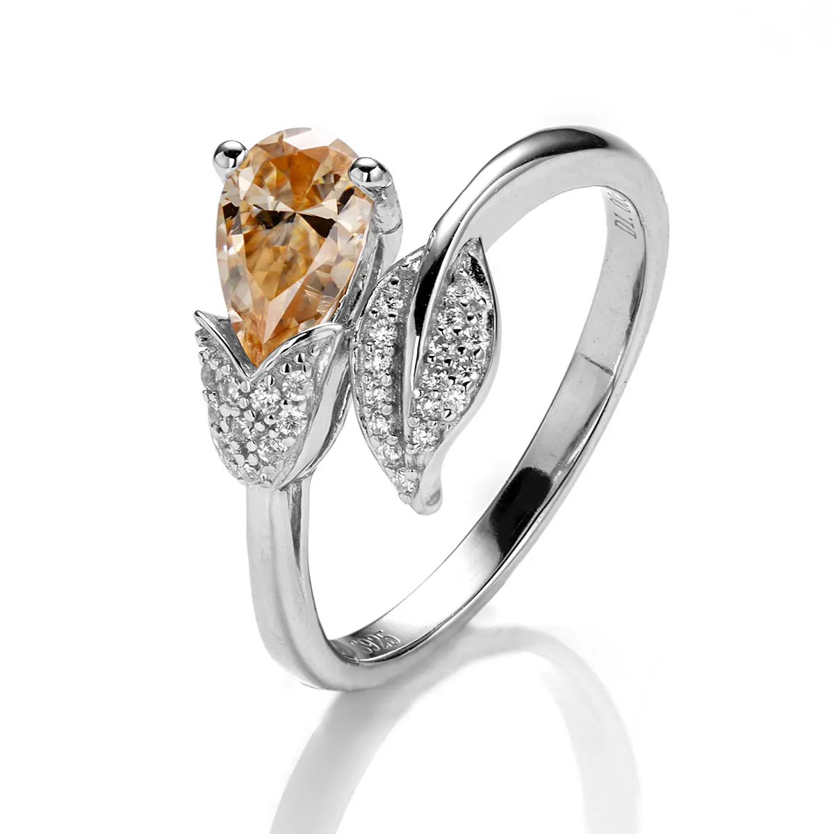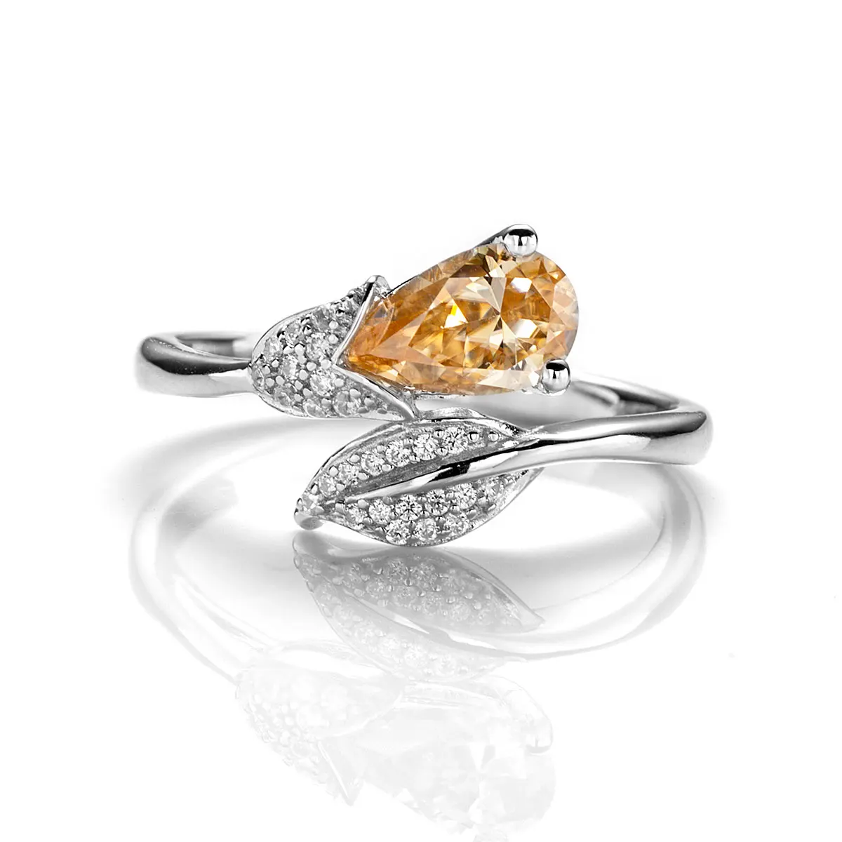 Кольцо женское из серебра 925 пробы, с мусанитом, с грушевидной огранкой