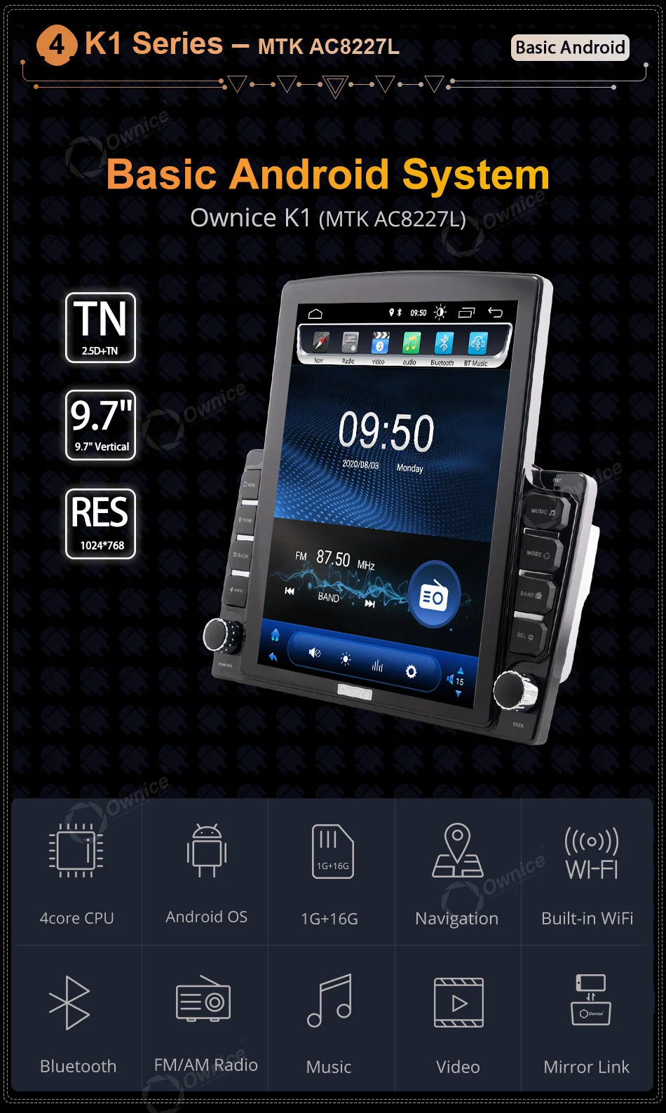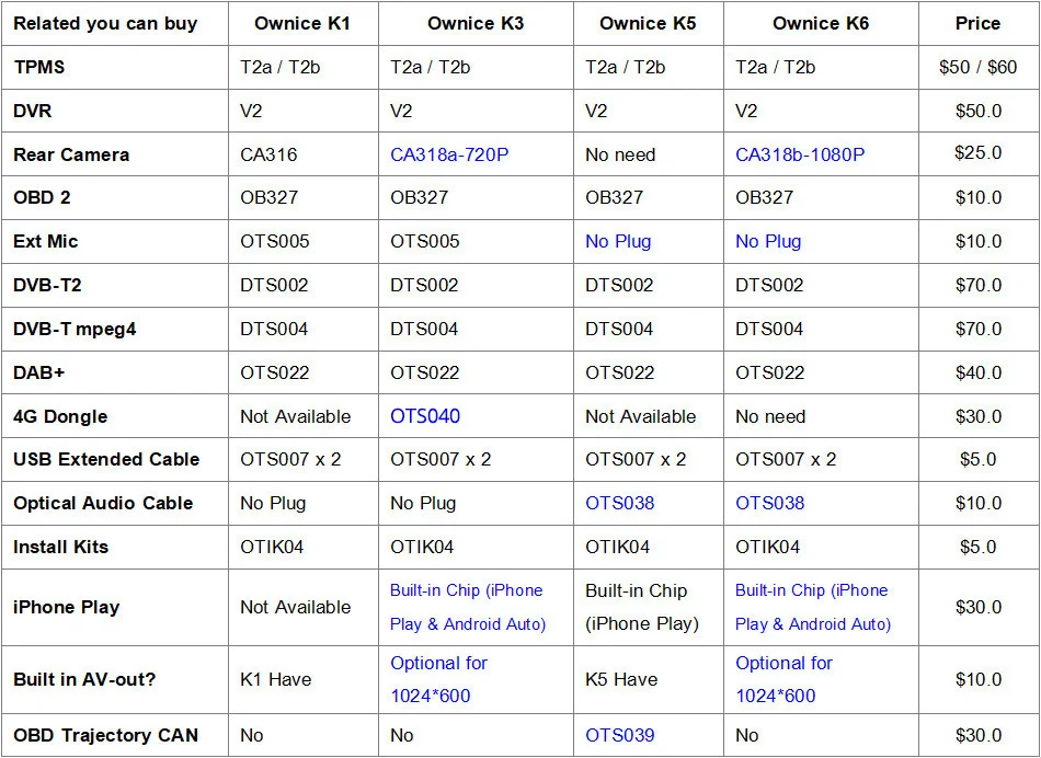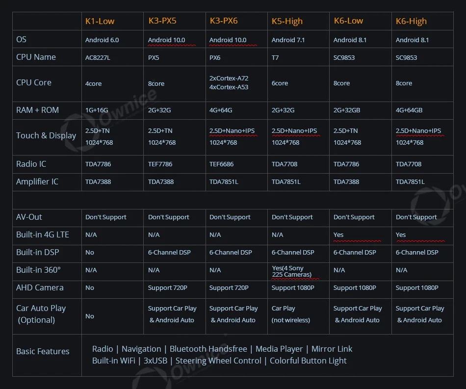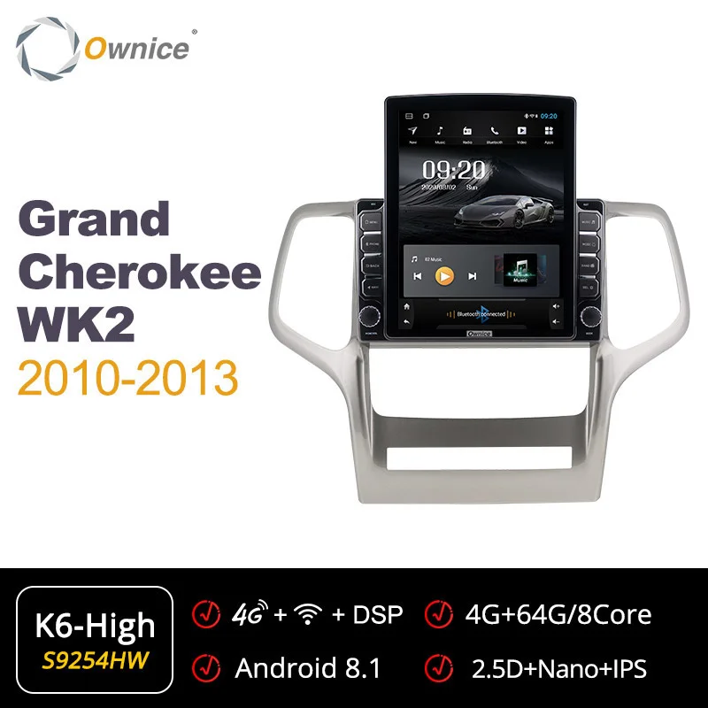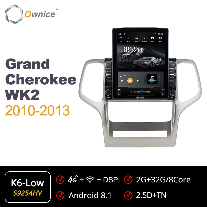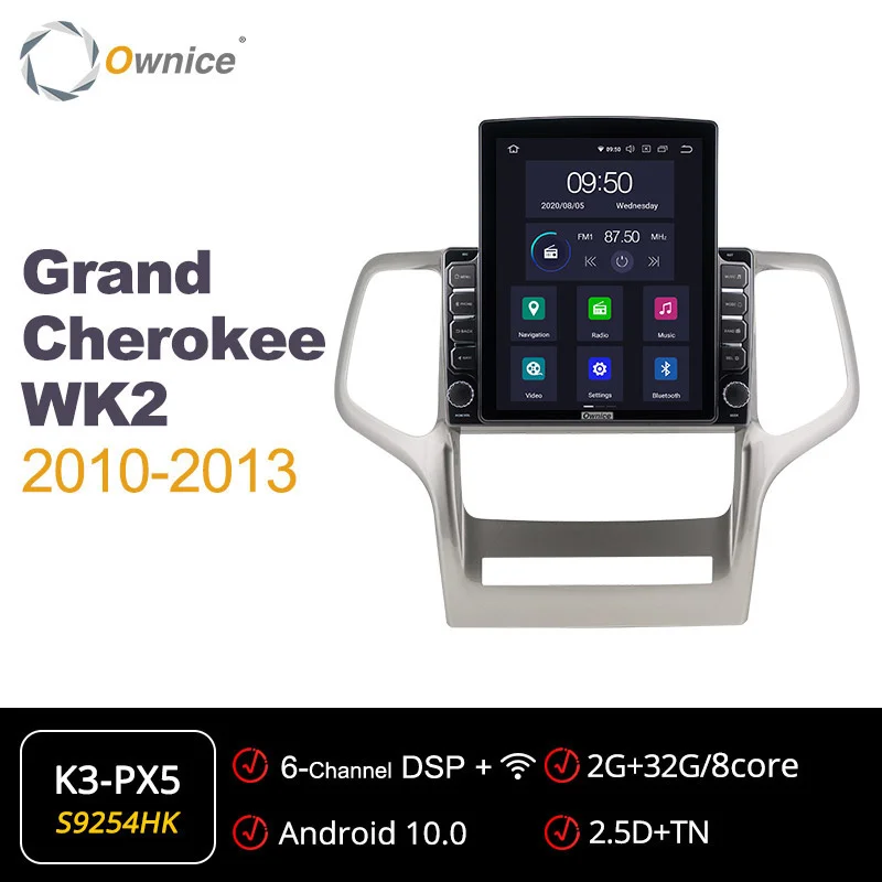 Подходит для Для Jeep Grand Cherokee WK2 2010 - 2013Если оригинальное автомобильное радио имеет функцию ниже, совместим ли блок Ownice Head?* Вариант 1-кабель XC251A, поддержка: управление рулевым колесом; Открытие двери дисплея, обратная Направляющая линия, информация о режиме автомобиля.* Опция 2-кабель XC251B, поддержка: Управление рулевым колесом; Открытие двери дисплея, обратная Направляющая линия, информация о режиме автомобиля; Оригинальный серийный усилитель.Внимание:Приведенная выше информация только для справки, иногда она может не быть совместима с некоторыми автомобилями, потому что автомобили производятся в разных странах в разных летних вариантах, спасибо за понимание. Блок Ⅱ: 9,7 "вертикальный Экран головное устройство (1024*768)K1-Low ------ AC8227L| Android 6,0 | 1G + 16GB | 2.5D + TN | Радио TDA7786 | Усилитель TDA7388K3-PX5 ------ PX5 | Android 10,0 | 2G + 32GB |2.5D + TN| Радио TDA7786 | Усилитель TDA7388К3-PX6------- PX6 | Android 10,0 | 4G + 64GB | 2.5D + Nano + IPS | Радио TEF6686 | Усилитель TDA7851LK5-High ------ T7 | Android 7,1 | 2G + 32GB | 2.5D + Nano + IPS | Радио TDA7708 | Усилитель TDA7851LK6-Low ------- SC9853 | Android 8,1 | 2G + 32GB | 2.5D + TN | Радио TDA7786 | Усилитель TDA7388K6-High ------ SC9853 | Android 8,1 | 4G + 64GB | 2.5D + Nano + IPS | Радио TDA7708 | Усилитель TDA7851L
