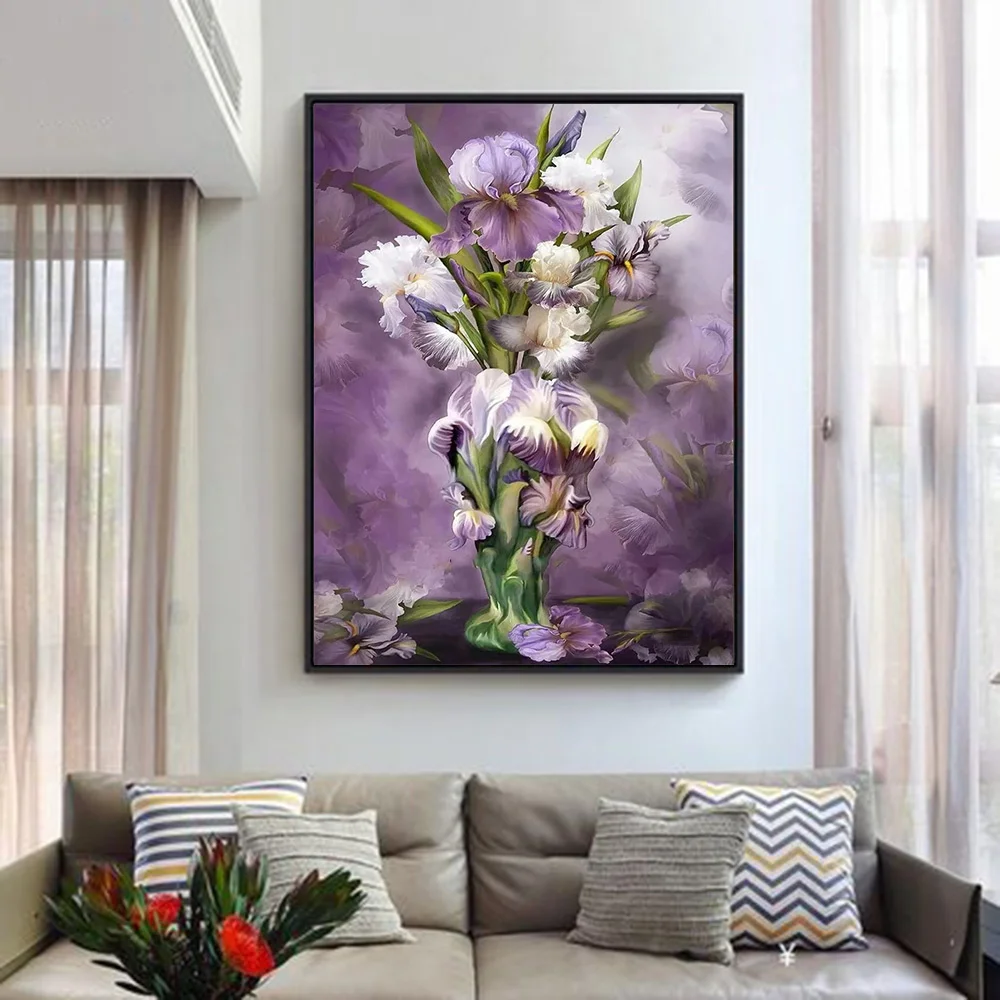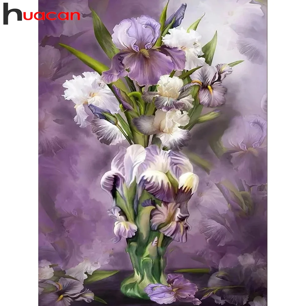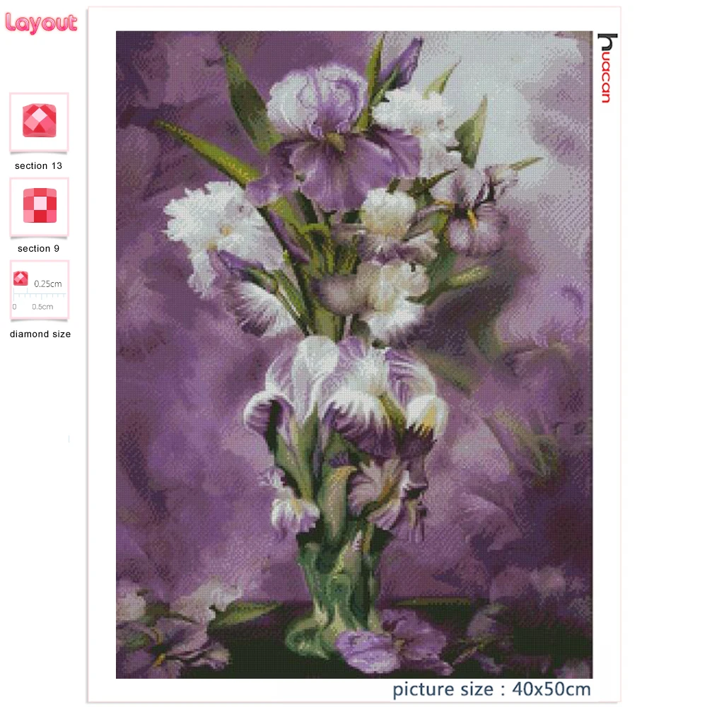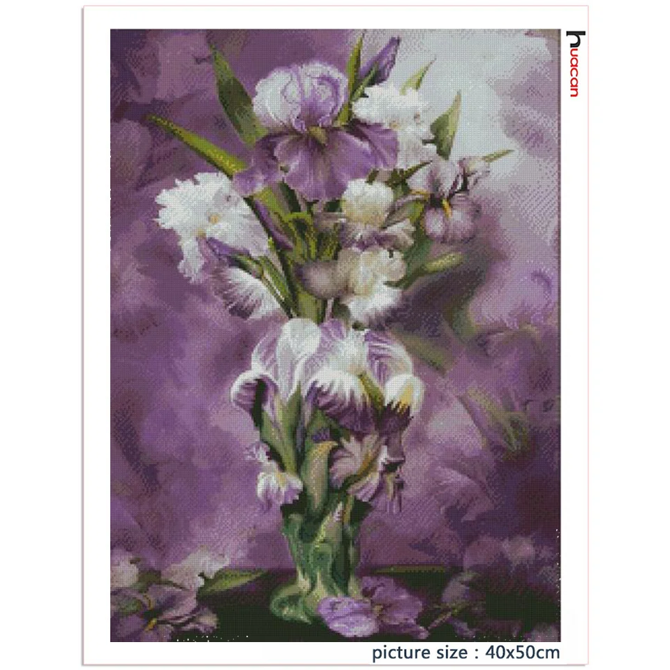Картина из страз сделай сам Huacan, Декор для дома, квадратнаякруглая Алмазная вышивка, мозаика в виде вазы с цветами алмазная живопись