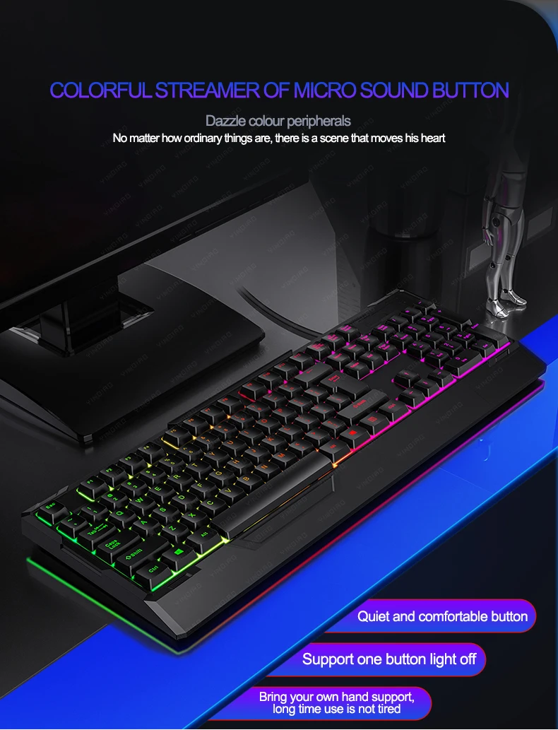 Светящаяся компьютерная игровая мышь, клавиатура, набор проводной м...