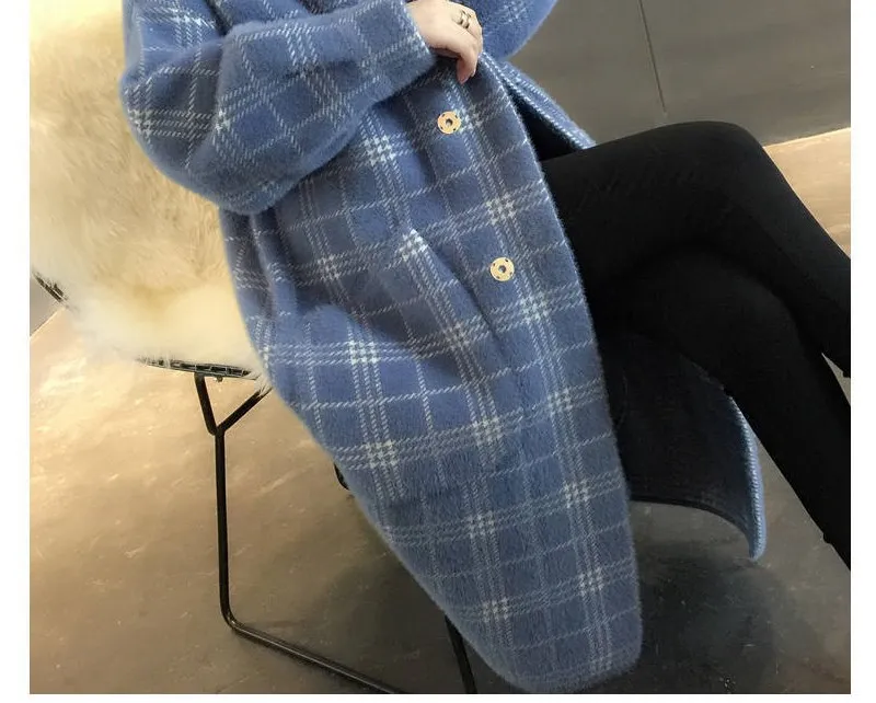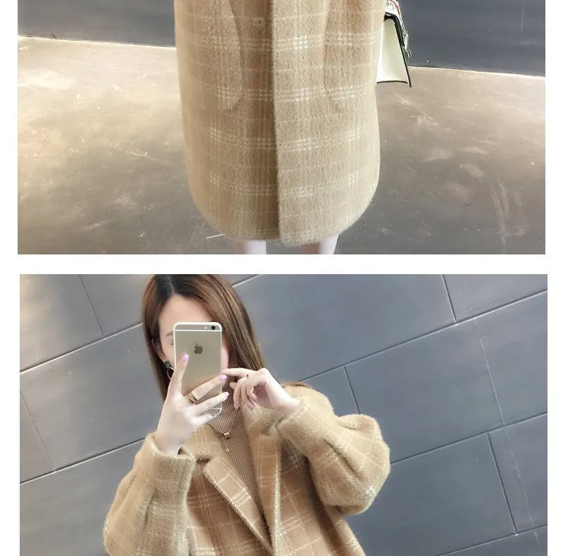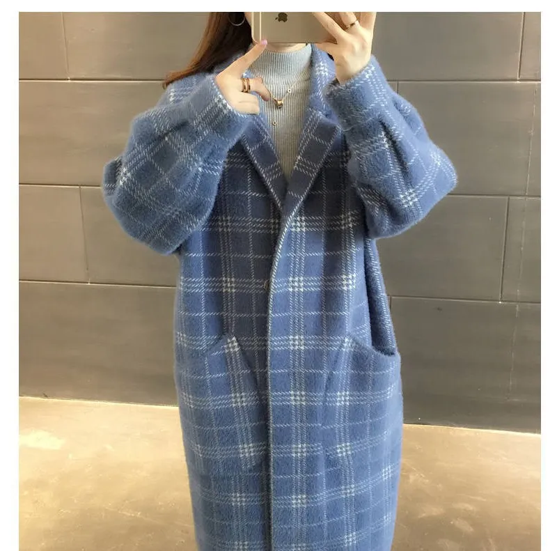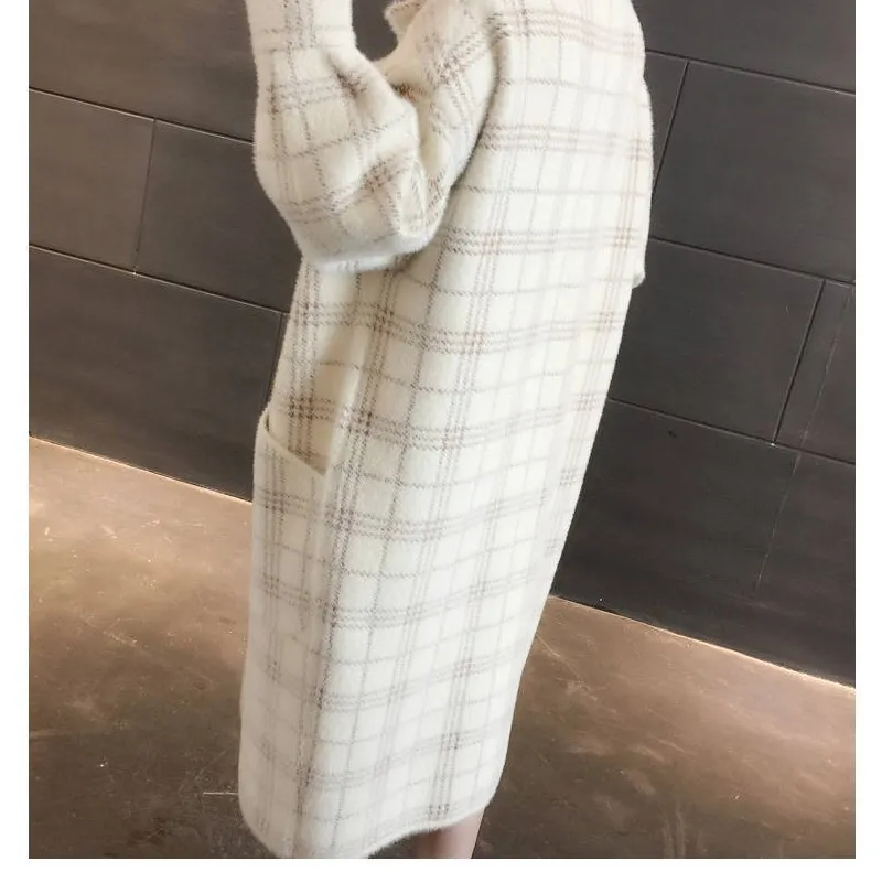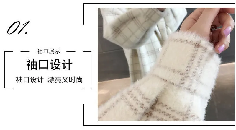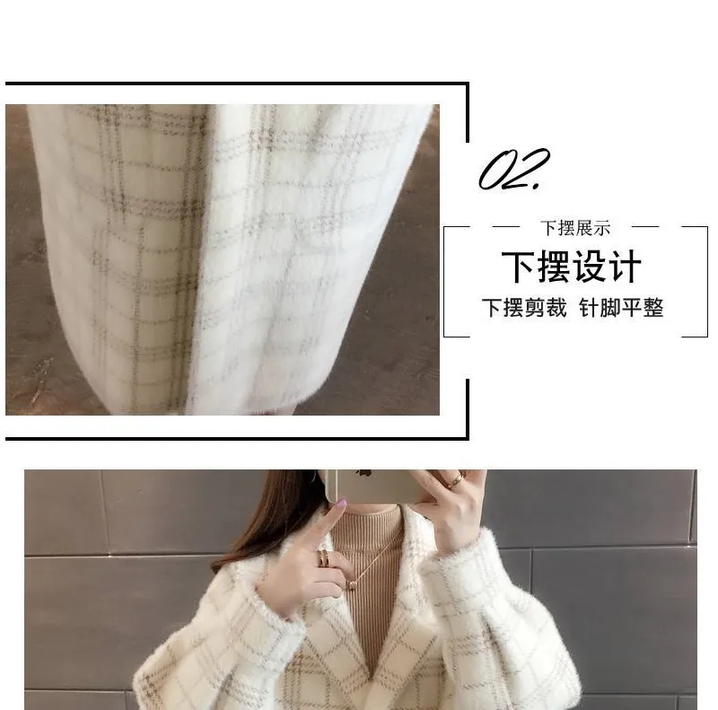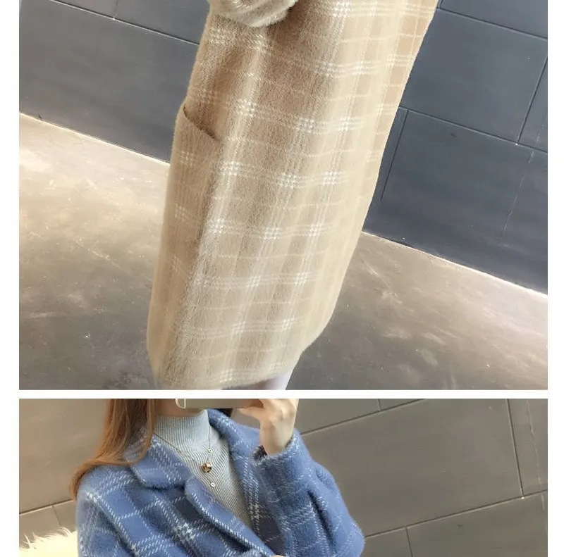 No shed hair Новый кардиган из искусственной норки на флисе для осени и зимы, Женское пальто из норки, плотное пальто средней длины в клетку в Корейском стиле