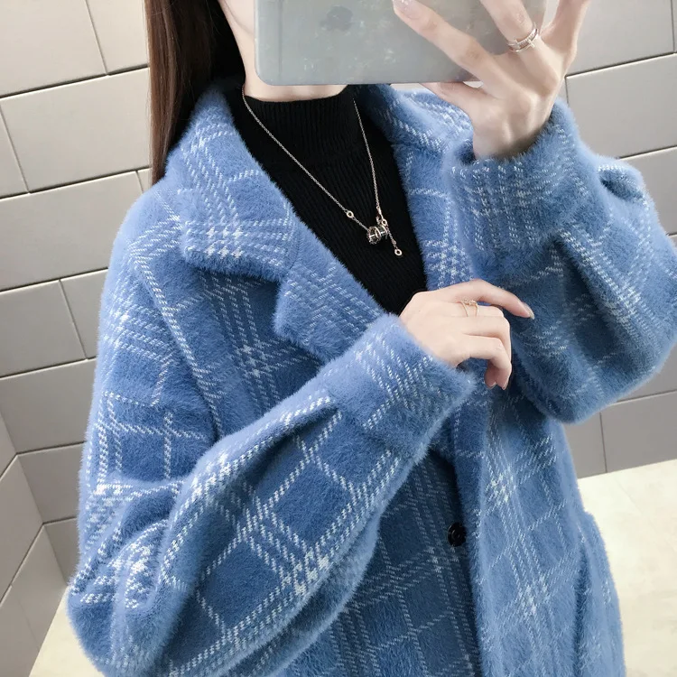 Новинка корейский свитер пальто осень зима Женская клетчатая куртка...