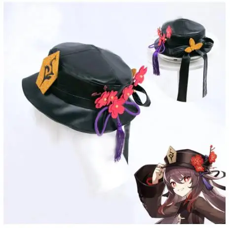 Шляпа Genshin Impact Hu Tao для косплея ПУ Кепка головной убор для ...