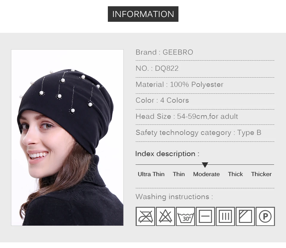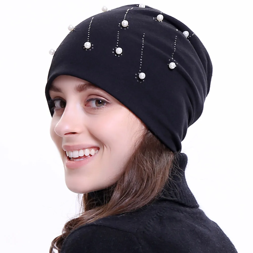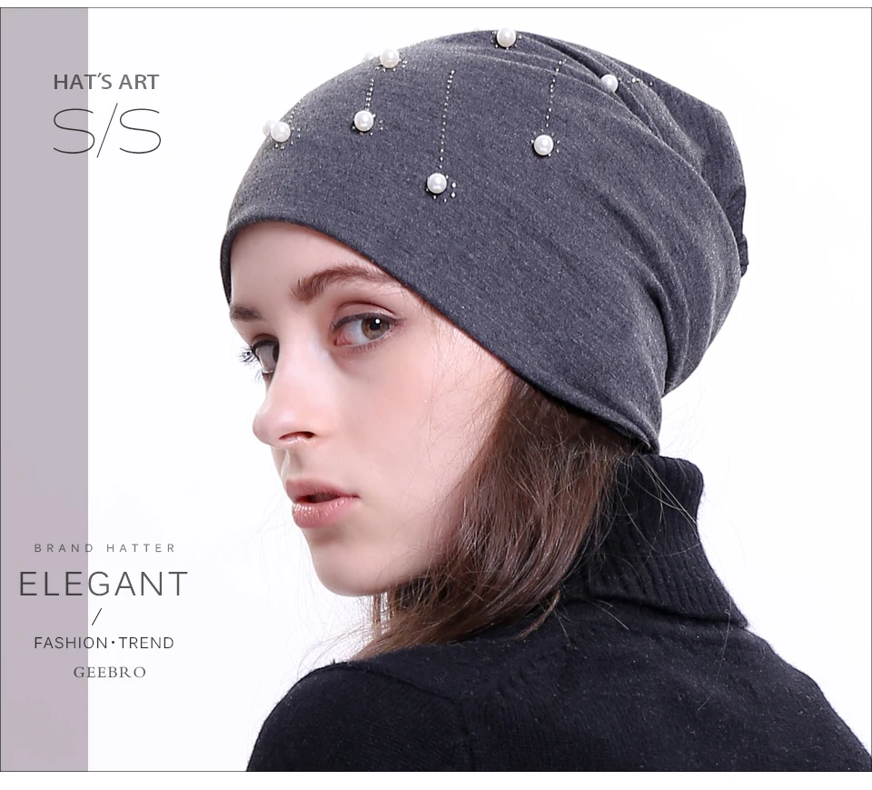 Geebro новые женские шапочки с жемчугом, женские мягкие шапки с разрезом, Женские Простые шапочки, Женская Балаклава, шляпа