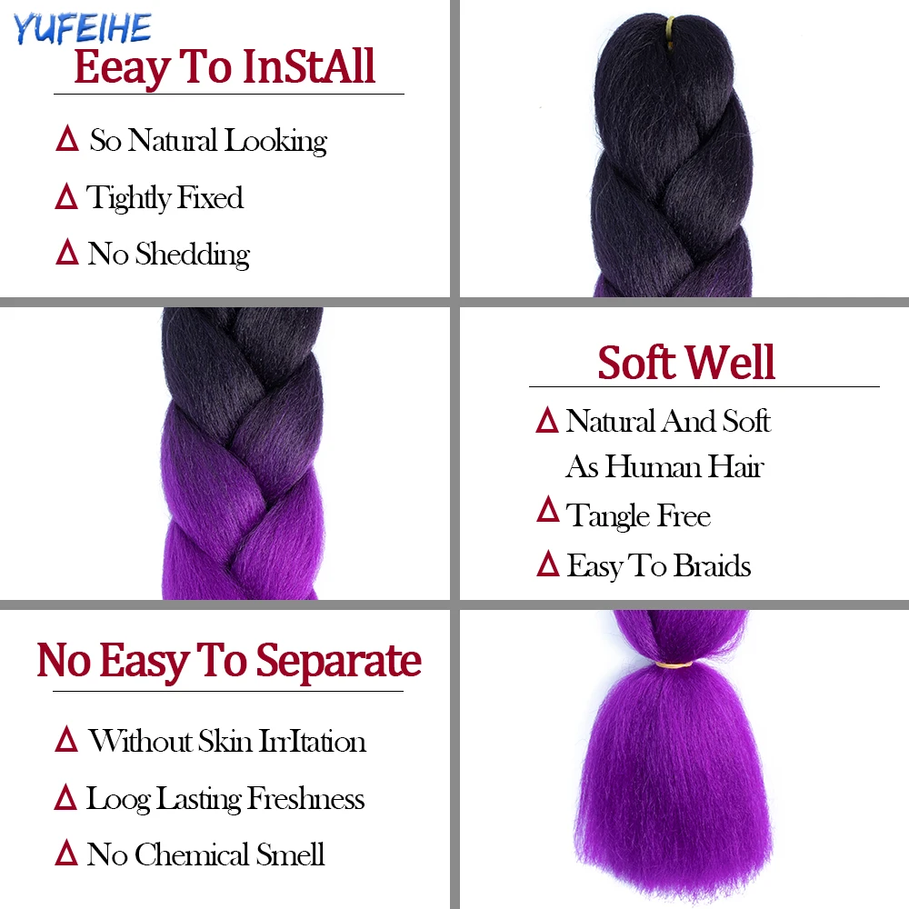 Плетеные синтетические косы Yufeihe, для женщин и детей, 24 дюйма, 100 г