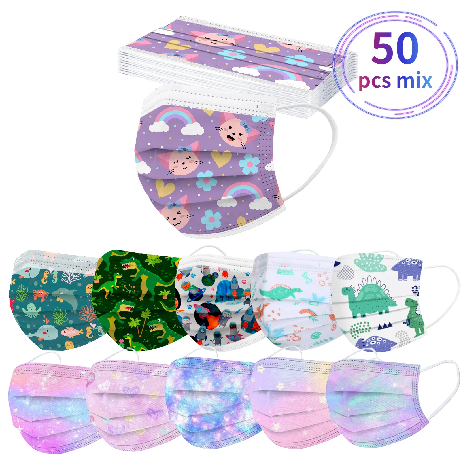 50 шт., Детские маскарильяс Ниньос, одноразовые маски для лица, 3 слоя, противопылевые маски, ткань, Пылезащитная маски для костюмированной вечеринки
