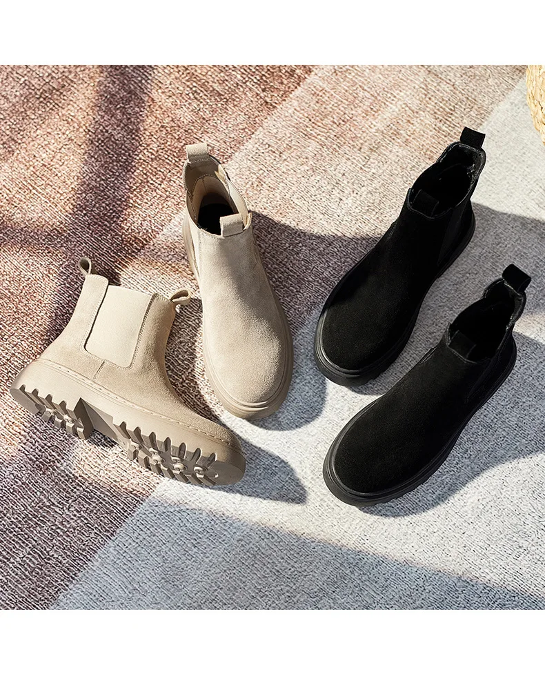 Женские замшевые ботильоны на платформе, короткие ботинки на плоской подошве, сезон осень-зима, 2021