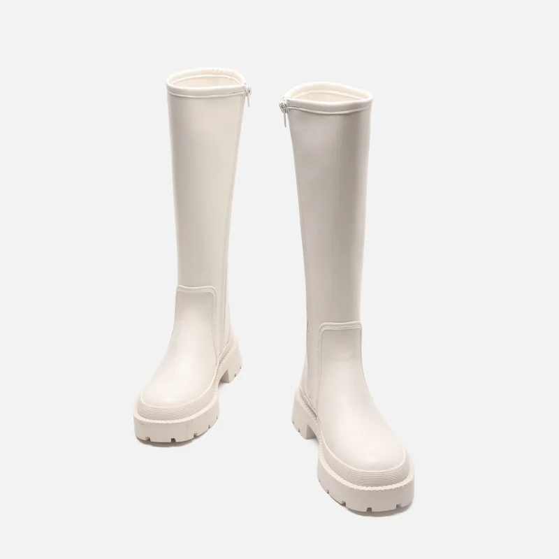 Женские высокие сапоги без застежки, белые плюшевые теплые сапоги д...