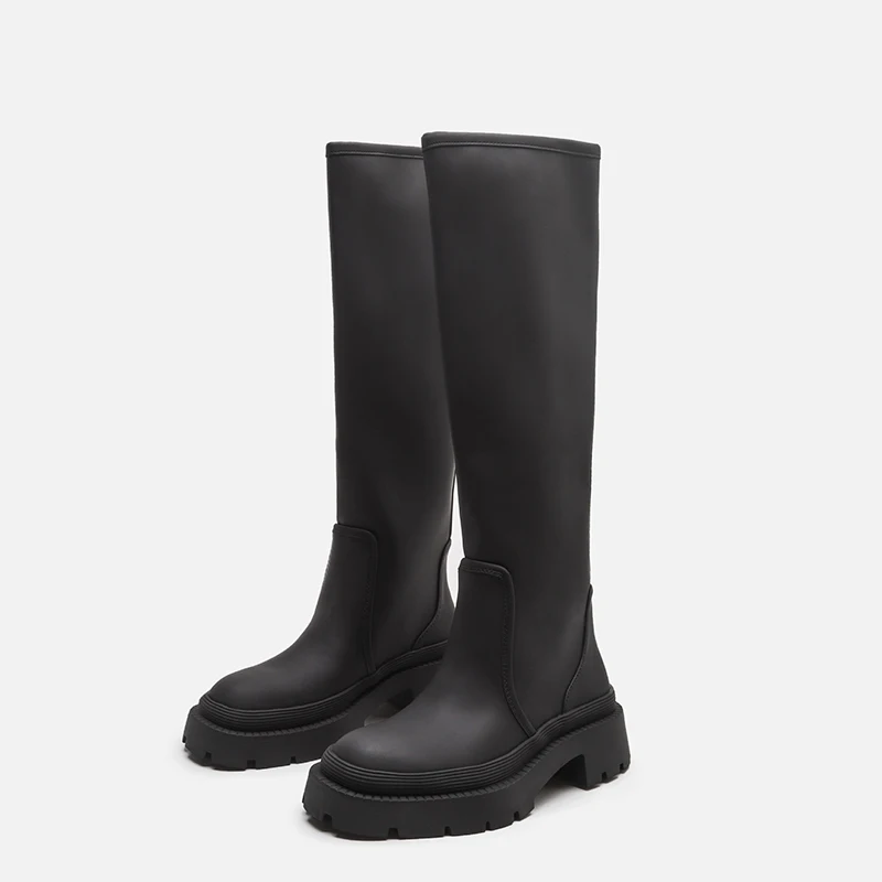 Женские длинные сапоги на меху Za, кожаные ботильоны на платформе и массивном каблуке, Осень-зима 891