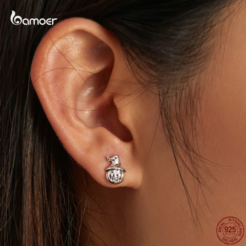 Милые серьги-гвоздики Bamoer на Хэллоуин, 100% Стерлинговое Серебро...