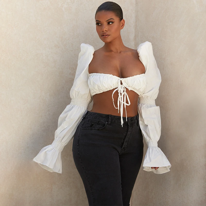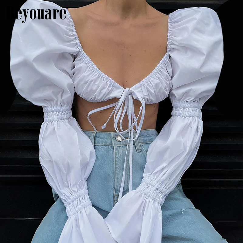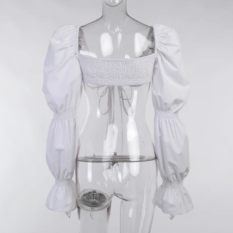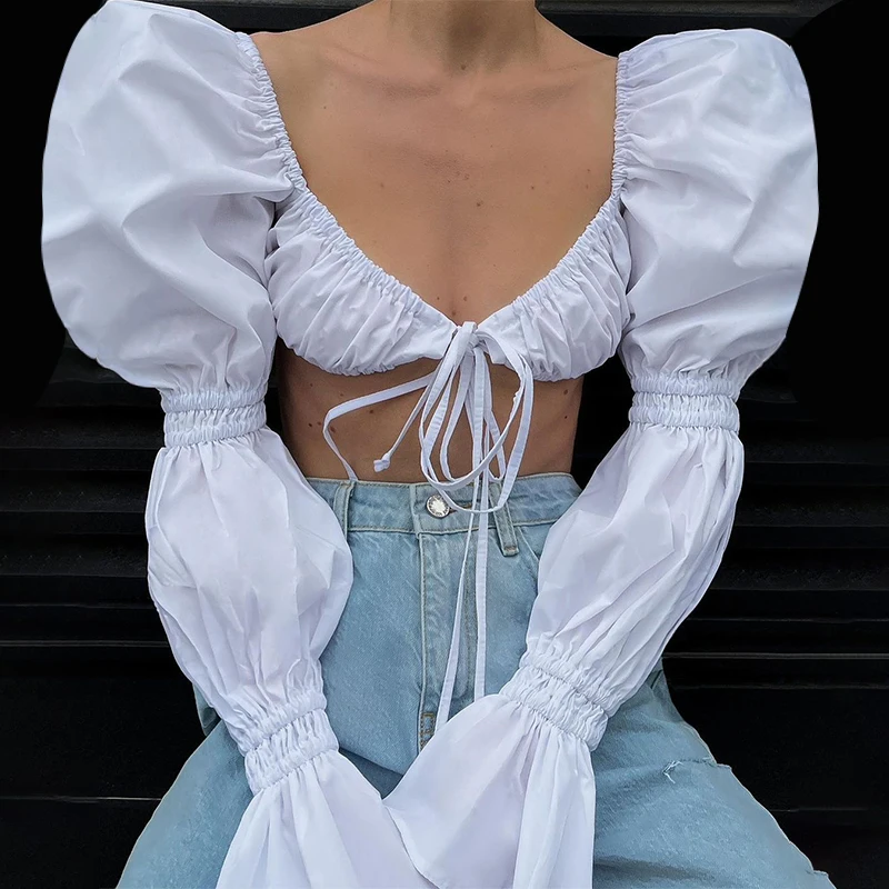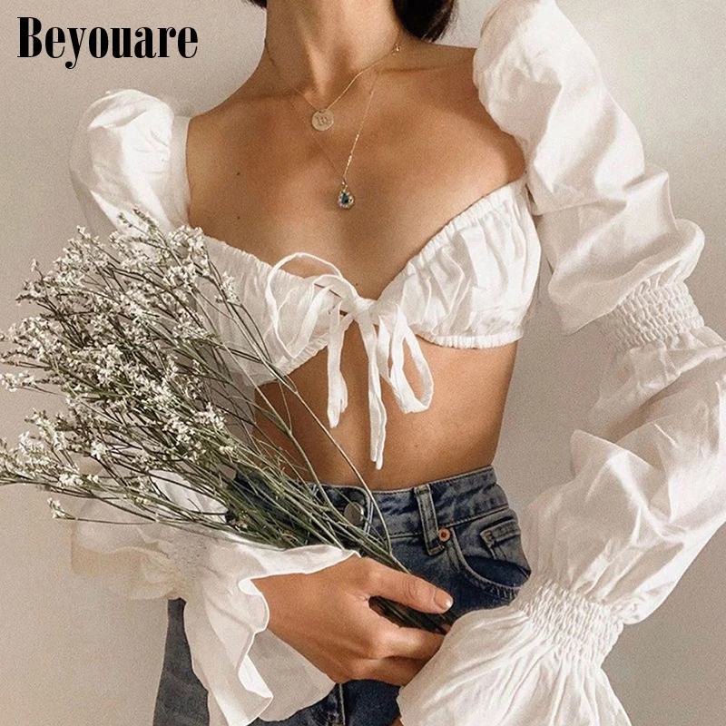 Женская блузка с рукавами-фонариками Beyouare, белая Элегантная укороченная блузка с открытой спиной, в романтическом французском стиле, осень