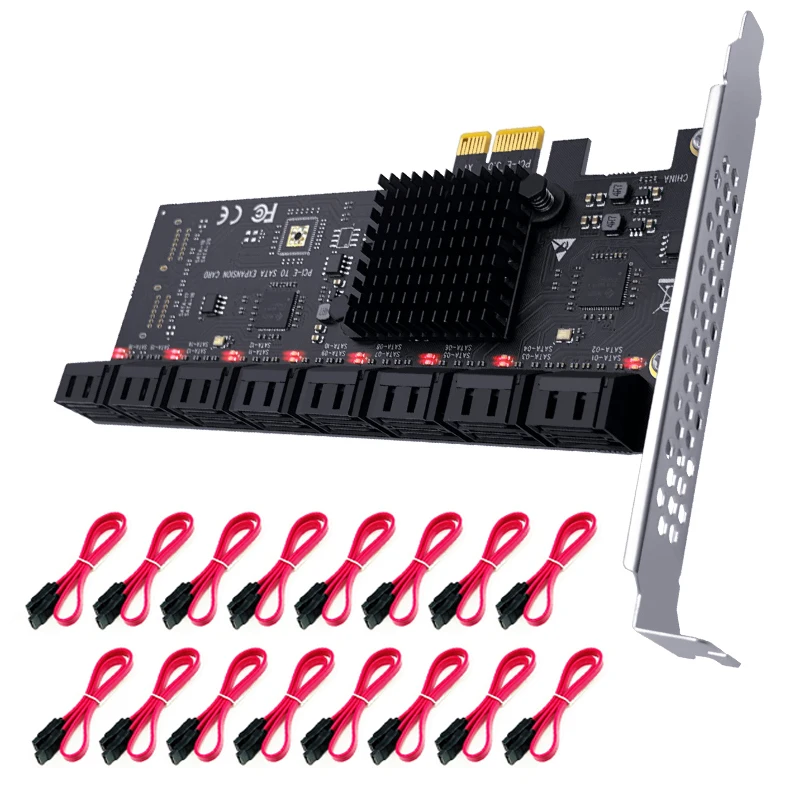 Карта PCIE SATA, 16 портов, 6 ГБ, карта SATA 3,0 PCIe, карта расширения контроллера PCIe-SATA, слоты X4 PCI, поддержка 16 устройств SATA 3,0