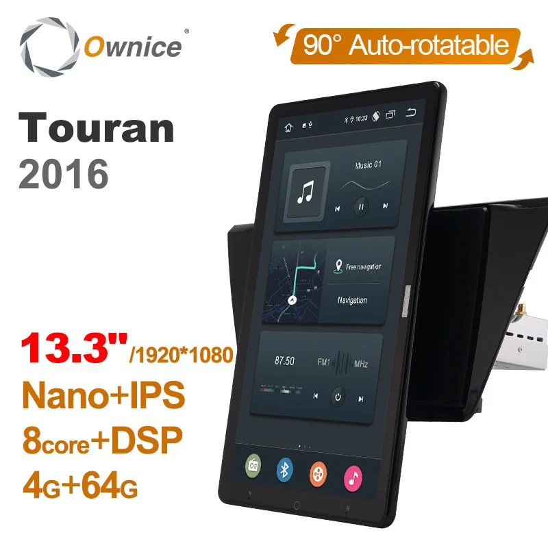 Автомагнитола, поворотная, 1920*1080, 13,3 дюйма, Ownice, Android 1...