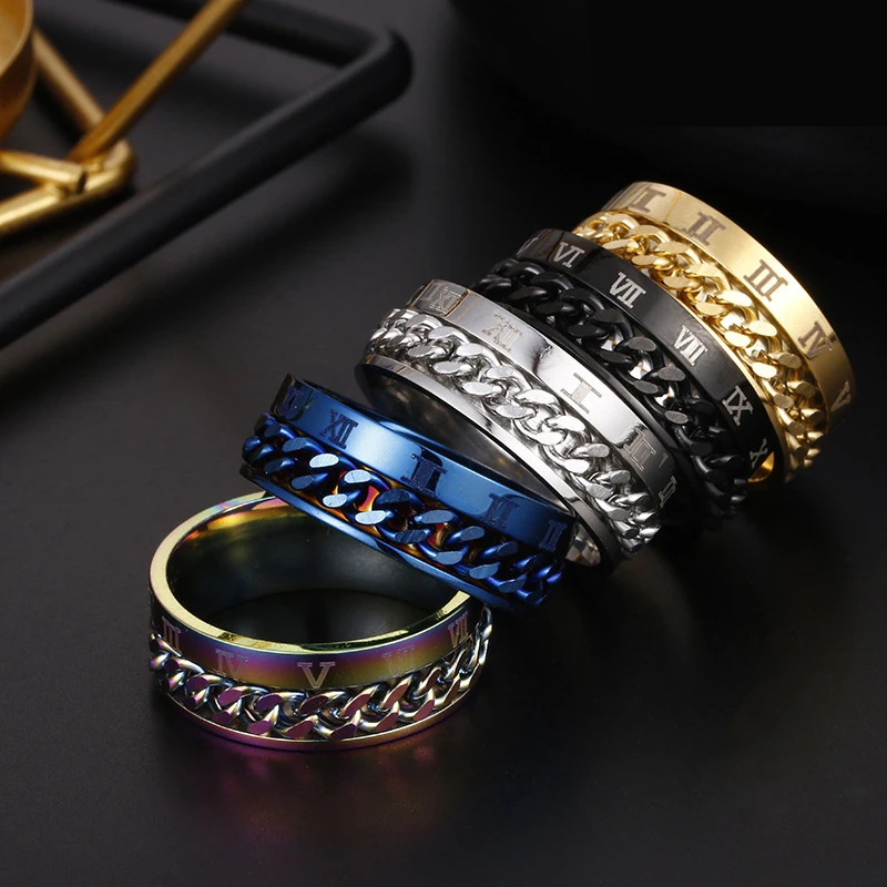 Спиннер для тревоги, вращающиеся кольца, вращающаяся цепь, кольцо-антистресс для пар, стальные римские цифры, многофункциональная цепь, мужской штопор, подарок