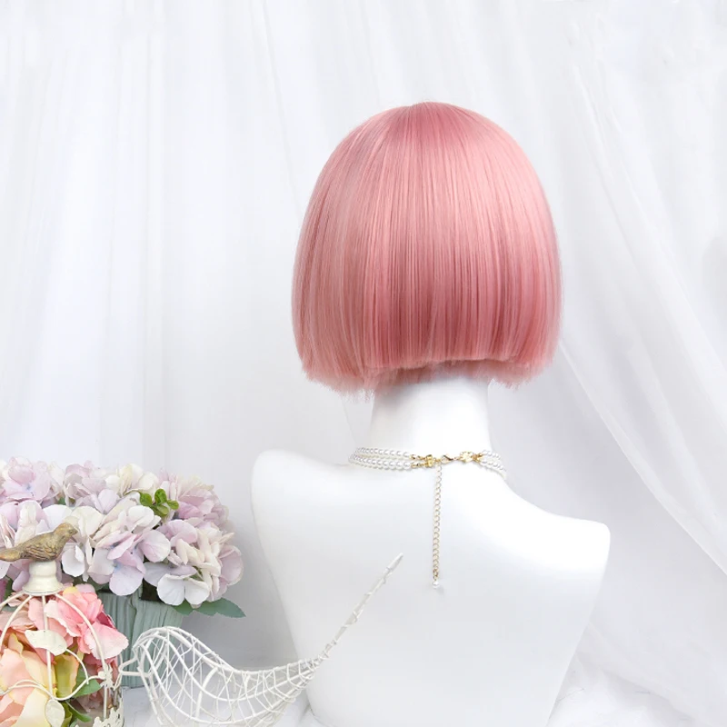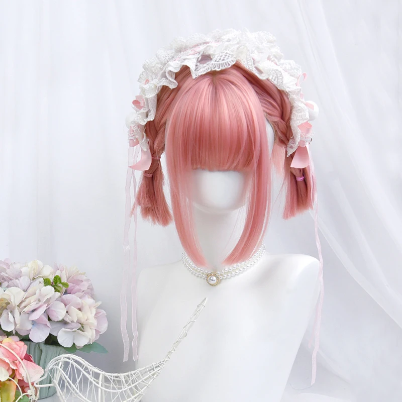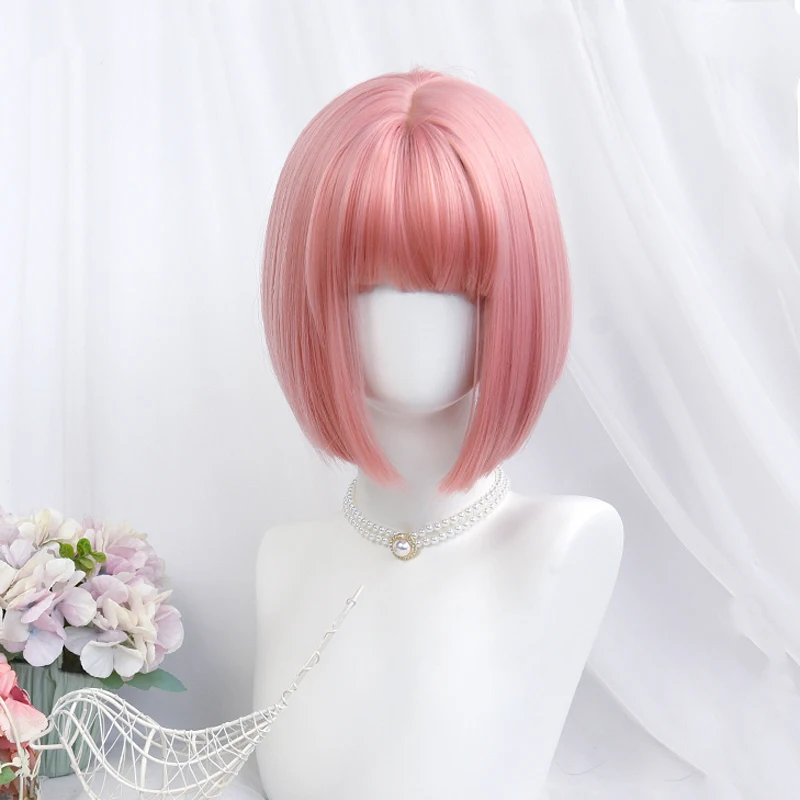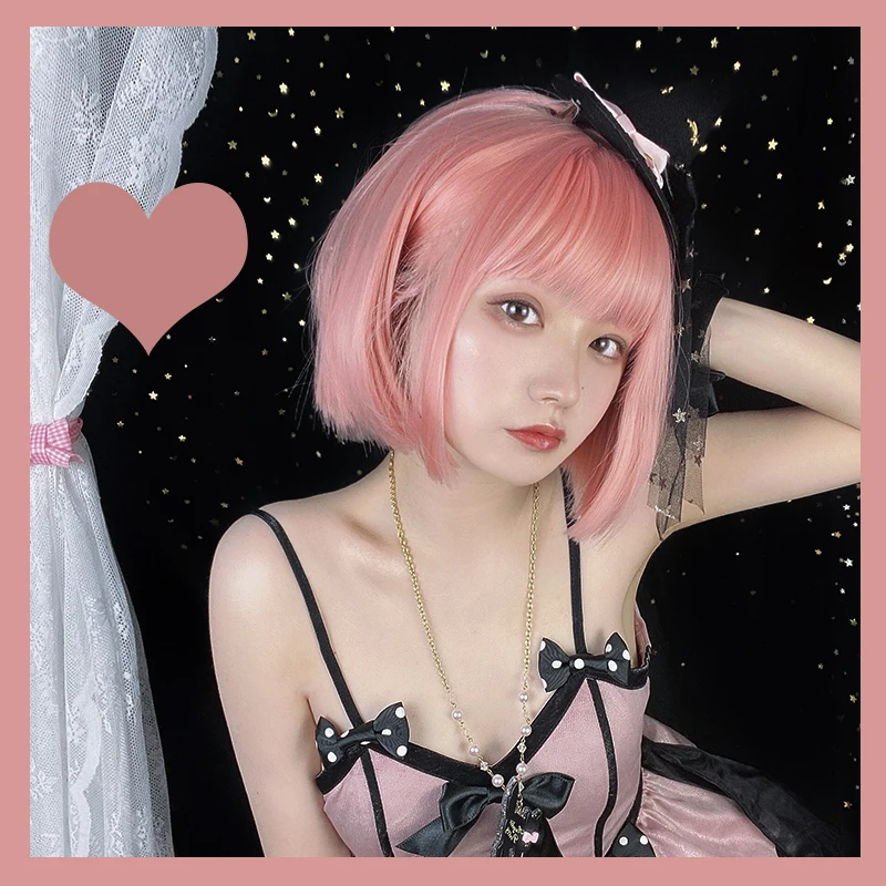 Парик в стиле лолита Skura светло-розового цвета, Сказочная челка для косплея в стиле Харадзюку, прямые короткие волосы в стиле БОБО с милой бахромой для взрослых и девочек