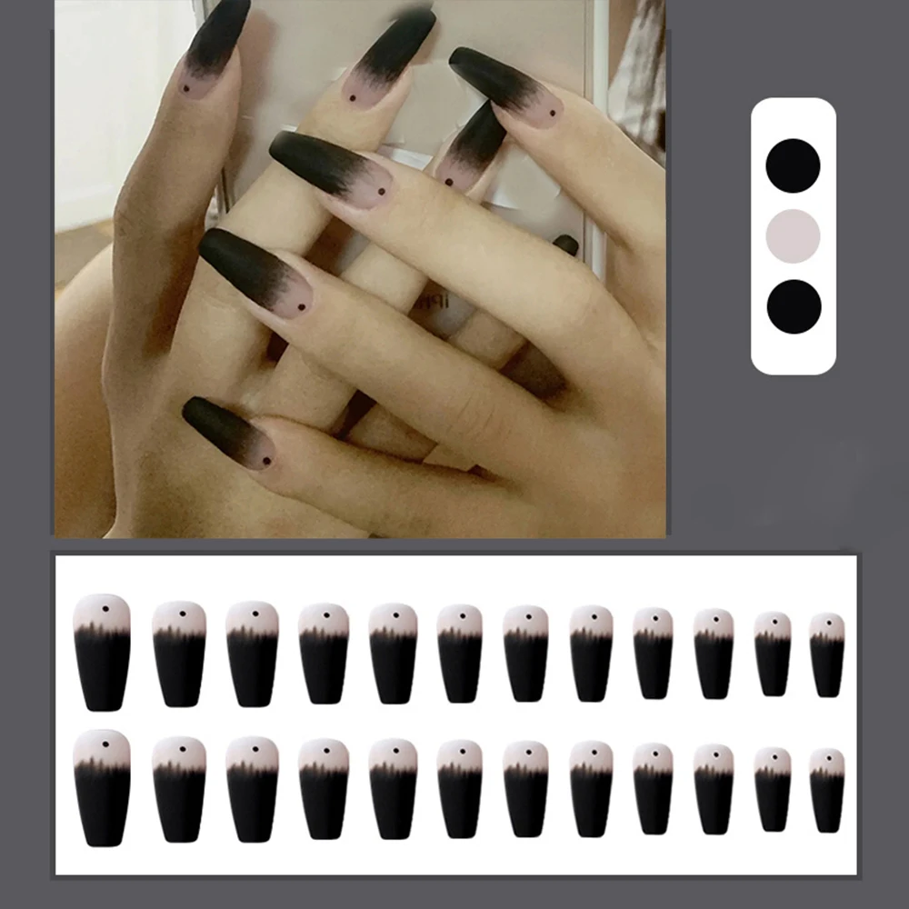 24 шт Длинные накладные ногти для гроба черные градиентные матовые ...
