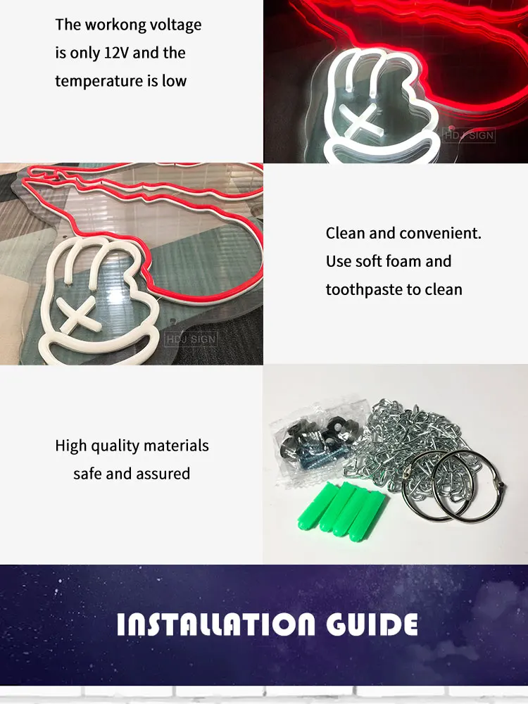 1. Акрил: обладает хорошей прочностью, светильник весом, долговечностью, не легко повредить, прозрачные материалы делают неоновый светильник s более красивым