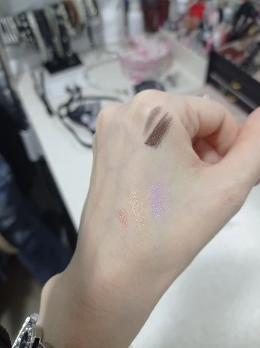 впечатления от покупки двоякое. сам карандаш устраивает, идеально (что удивительно!) подошёл к цвету моих теней (на фото рядом мазок карандаша и теней сразу), НО... колпачок пришел разбитый, карандаш (рисующая часть) отломился. я, конечно, его наточила и можно пользоваться, но вот колпачок теперь не держится и, наверное, развалится совсем, тогда ещё точилку отдельно надо будет, что мне не очень удобно, да и колпачок теперь нужен другой, так как родной слетает. накопала какой-то из старой косметики, одела, но тоже так себе сидит. спор не стала открывать, может быть зря. пришел товар относительно быстро до Ставрополя, упаковка должна быть лучше!