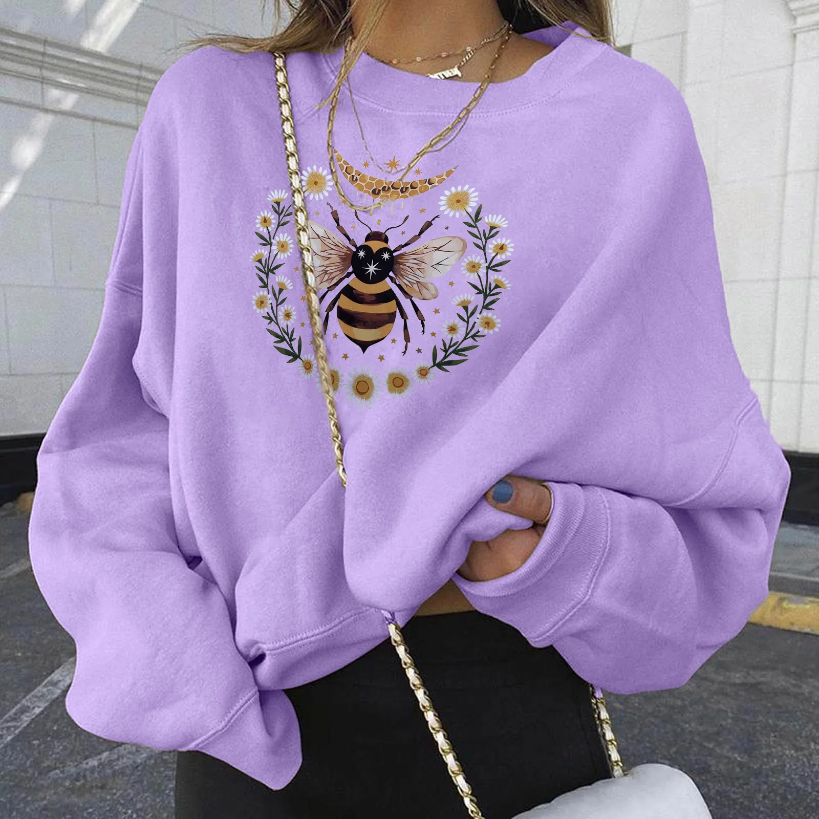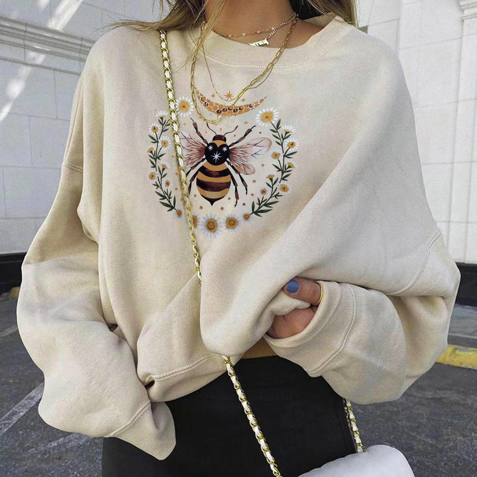 Женский короткий свитшот, утепленный, с принтом пчелы и длинным рукавом