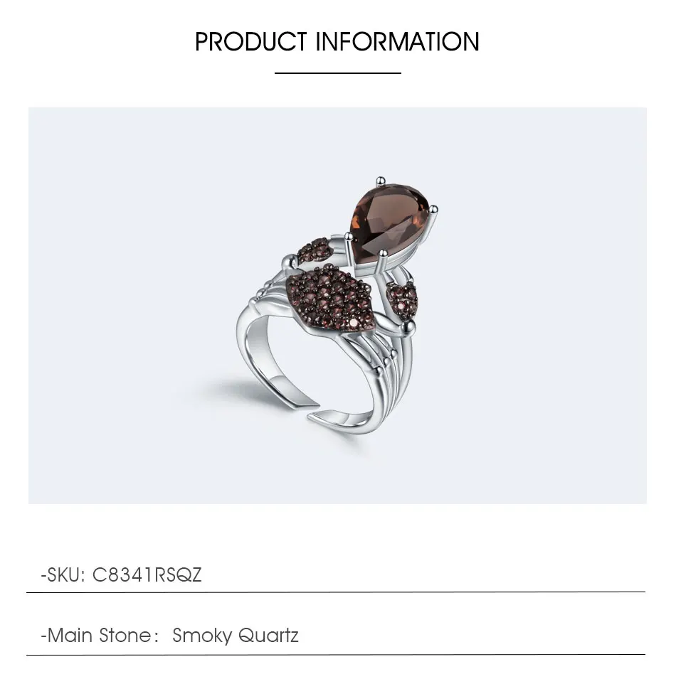 Кольцо женское из серебра 925 пробы, с натуральным дымчатым кварцем, ручной работы