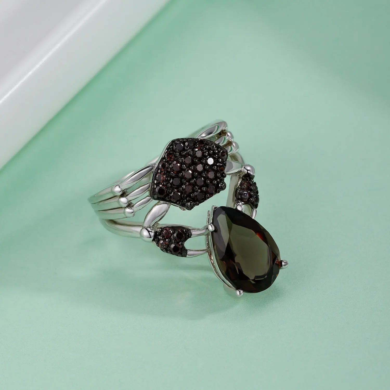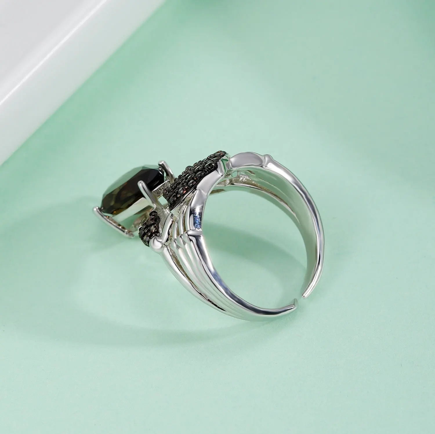 Женское кольцо с натуральным дымчатым кварцем, в граненом стиле