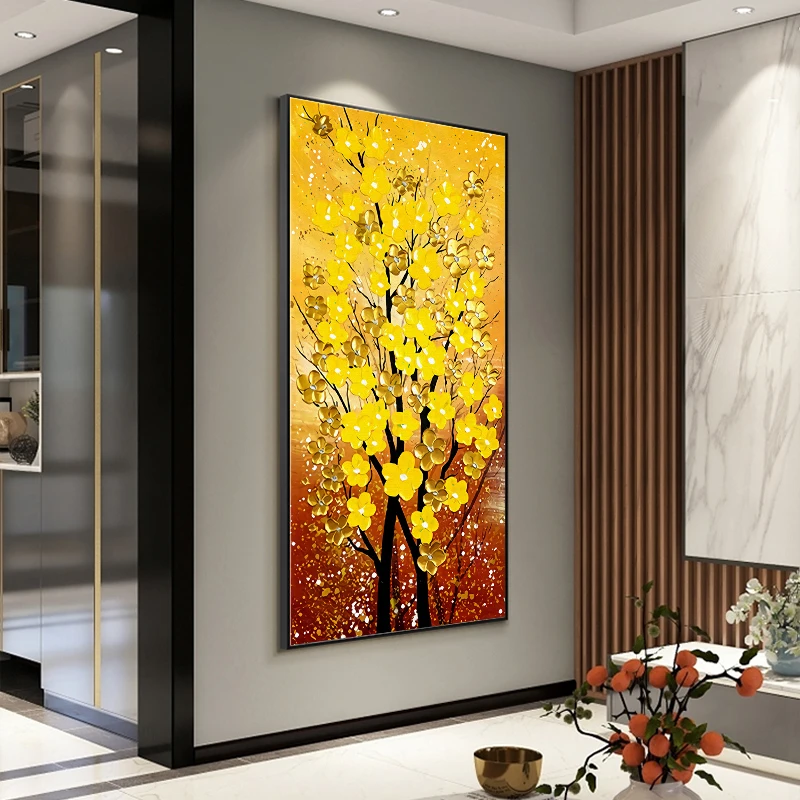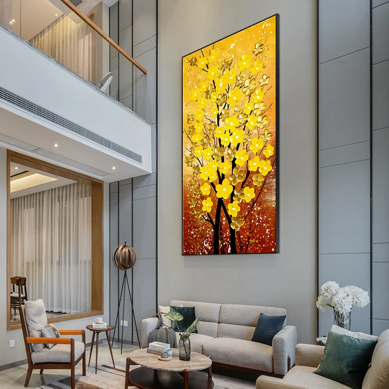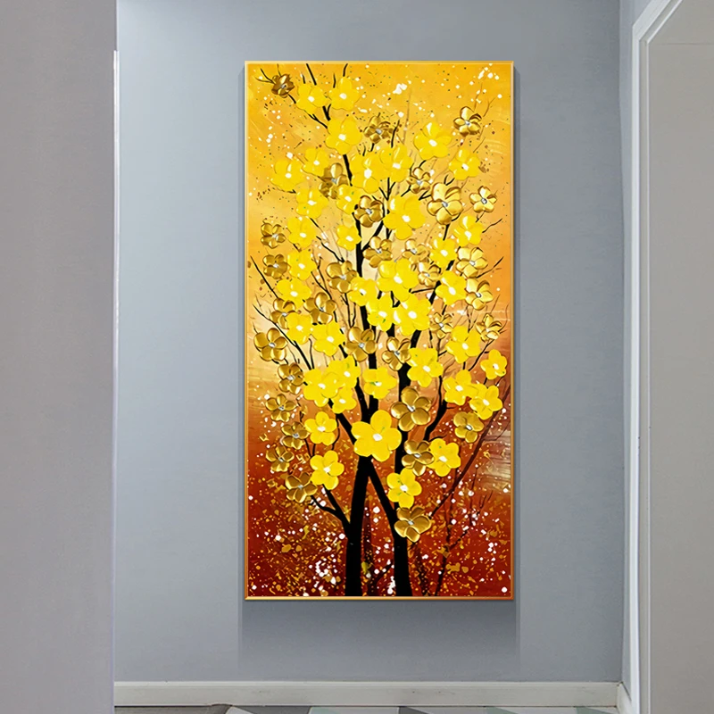 Желтая Картина на холсте с изображением богатых денег и деревьев, современные HD-принты и плакаты, настенное искусство, абстрактная картина для гостиной, домашний декор, подарок