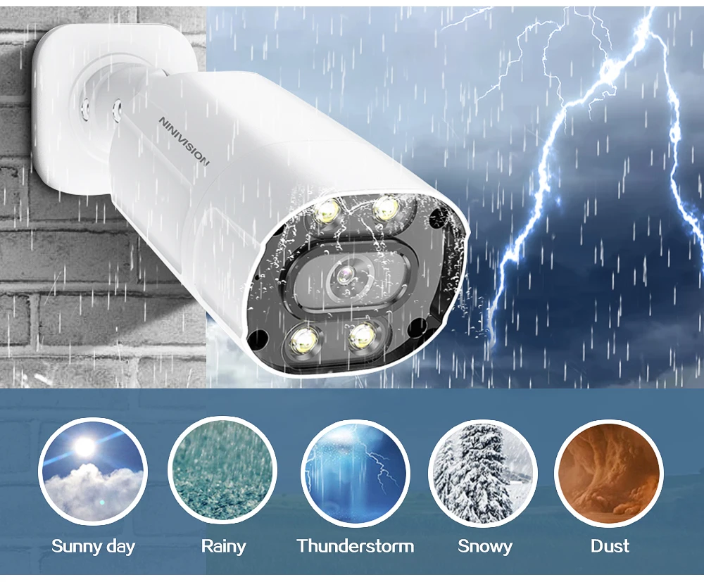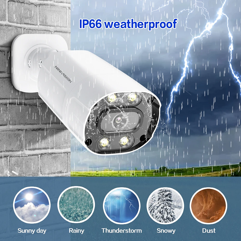 Используйте их в качестве наружных камер или крытых камер, так как они построены жестко, выдерживает любую погоду: дождь, снег, пыль и жаркие дни. С защитой от атмосферных воздействий IP66 и кабелями, просвечивающимися через подставку для защиты, гарантируем, что вы сможете ответить на их производительность, день в день. Наша камера имеет сверхпрочный металлический корпус, профессиональный IP66, устойчивый к атмосферным воздействиям, обеспечивая стабильную производительность как внутри, так и снаружи.