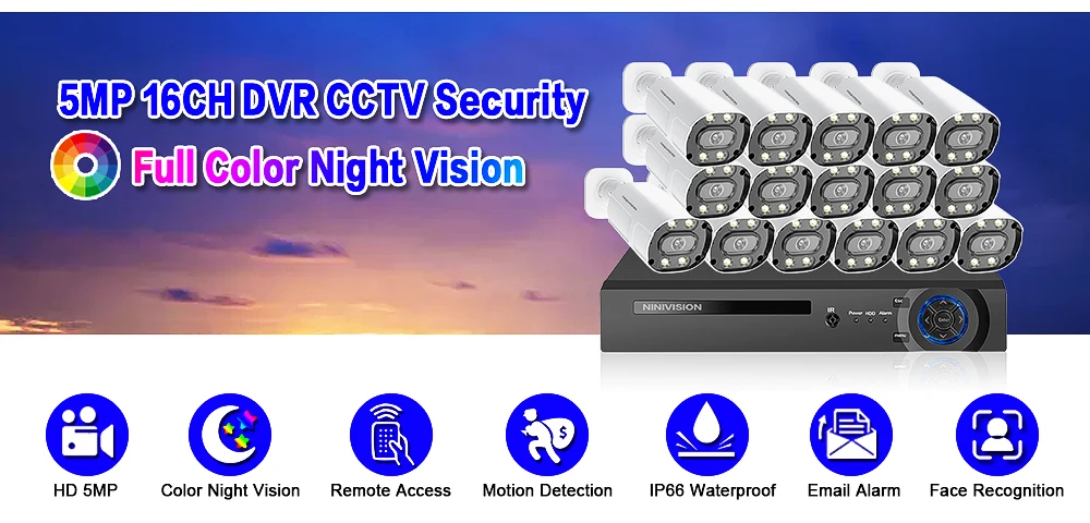 NINIVISION H.265 + AHD DVR 16CH 8CH система безопасности камера 5MP HD камера водонепроницаемая полноцветная камера ночного видеонаблюдения комплект камеры видеонаблюдения