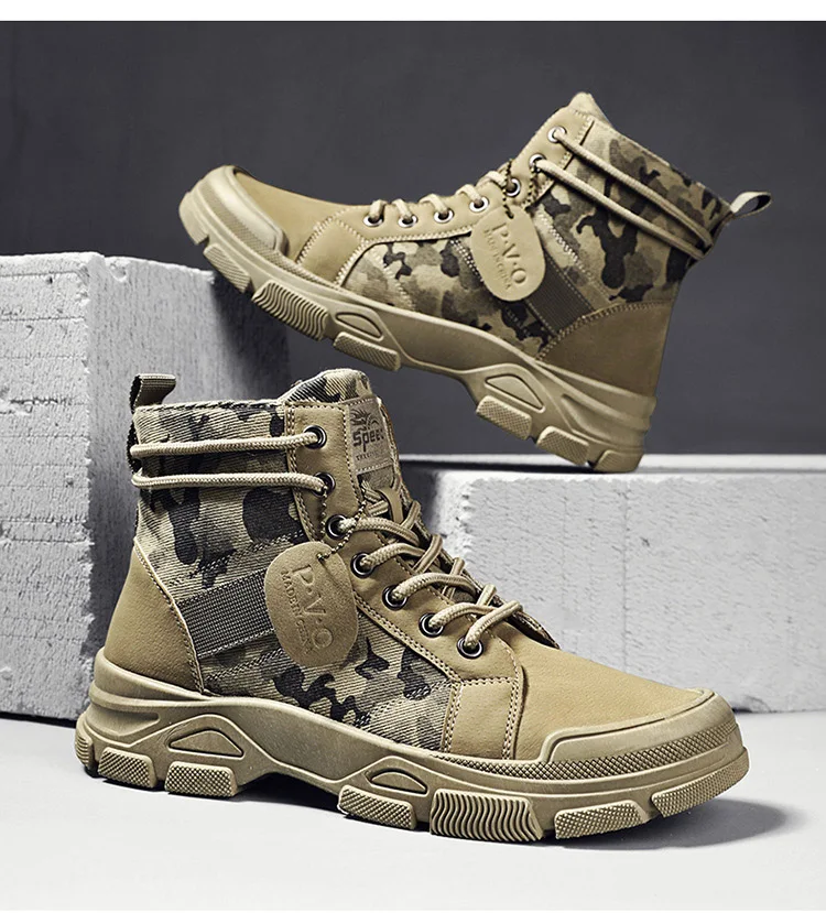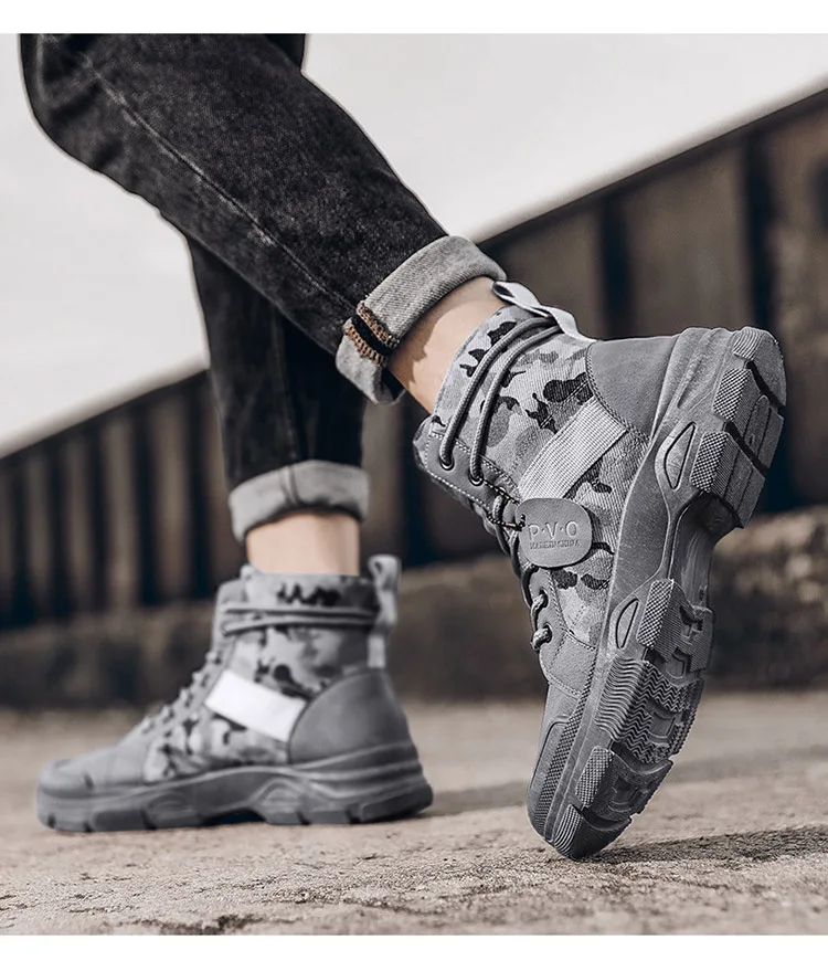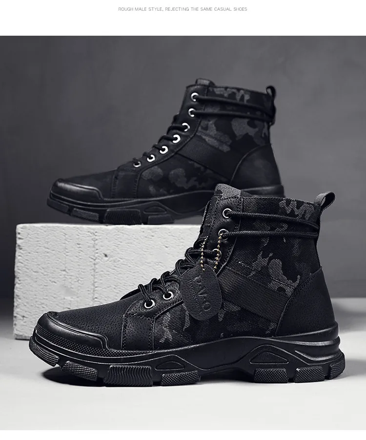Мужские ботинки-мартинсы с высоким берцем, камуфляжные, повседневные рабочие ботинки из простроченной кожи, 2021, большой размер, военные сапоги для пустыни