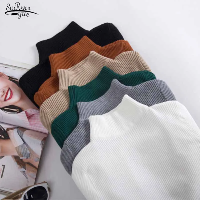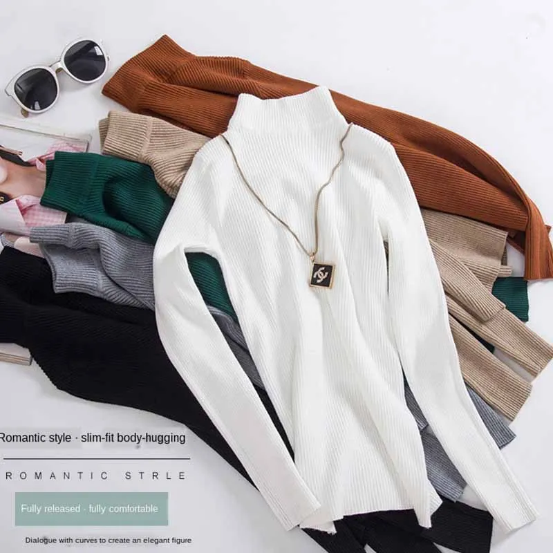 Осенне-зимний свитер с высоким воротником и длинным рукавом, вязаные облегающие свитера, женские повседневные пуловеры, женские свитера, женский свитер, 10643