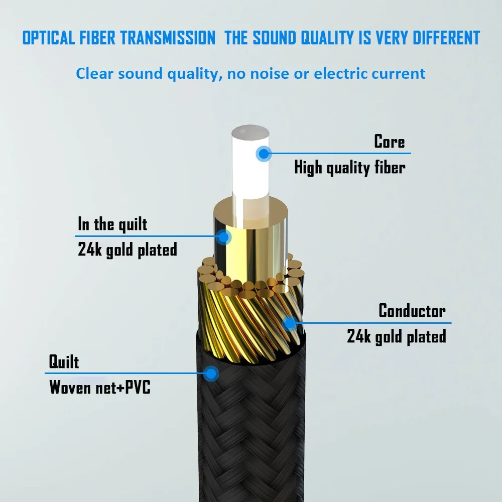 Цифровой оптический аудиокабель FDBRO, 24K, Позолоченный разъем, плетеная сетка, ПВХ, подходит для Ps34 X Box Tv, Blu-Ray плеера, динамика