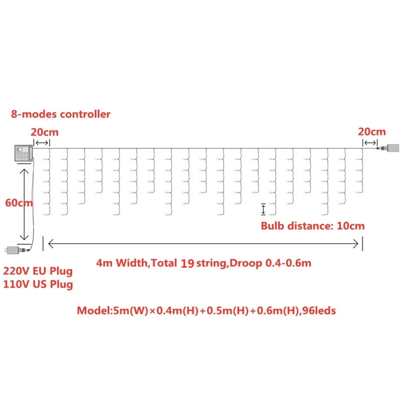 5 м Рождественская гирлянда светодиодная сосулька занавес струнный светильник s Droop 0,4-0,6 м наружный карниз садовое уличное украшение праздничный светильник