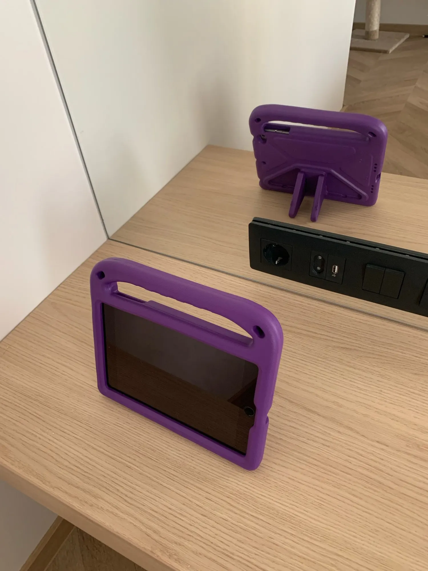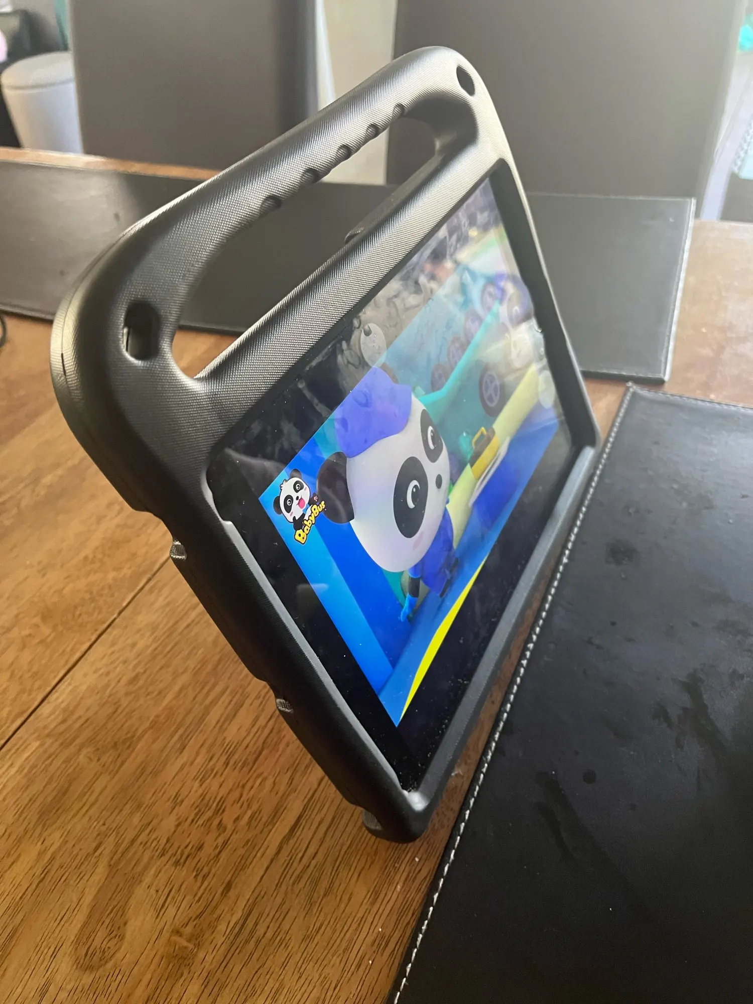 Блестяще! Как на фото. Не так уж сложно установить ipad. Хороший угол для просмотра. Мой малыш может настроить все сам.