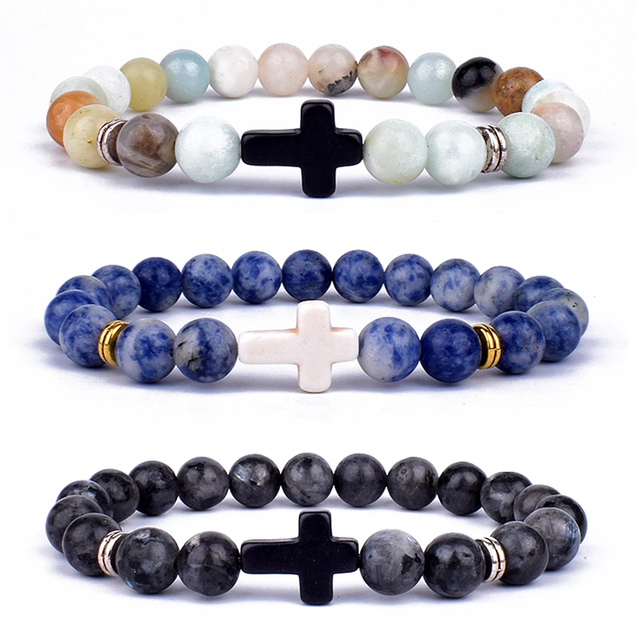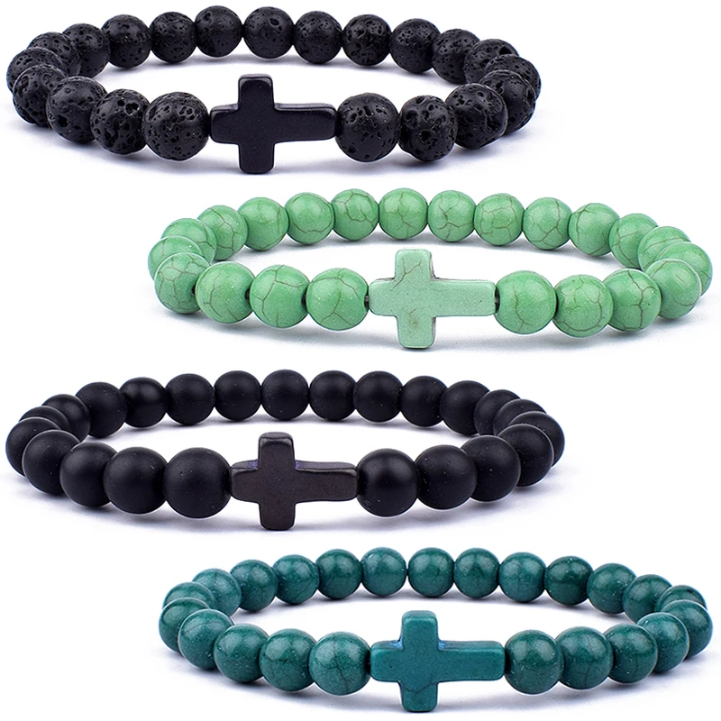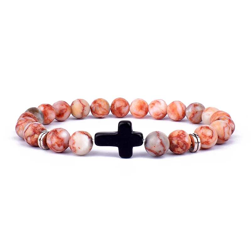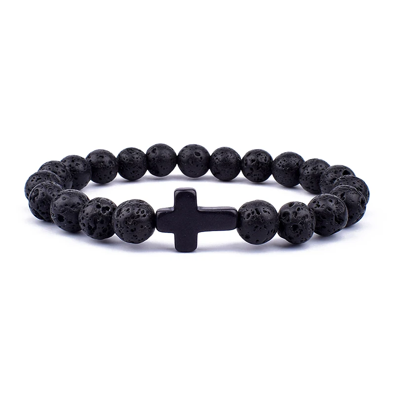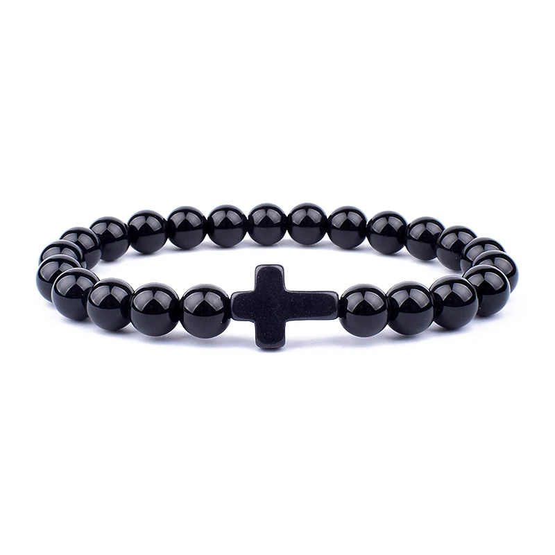 Модные мужские браслеты с подвесками в виде креста с Иисусом и искусственными камнями 8 мм, браслеты для женщин, ювелирные изделия для йоги