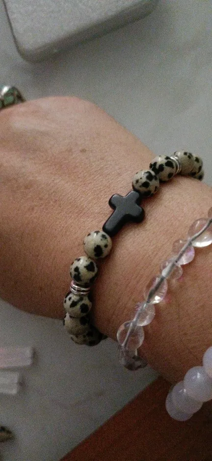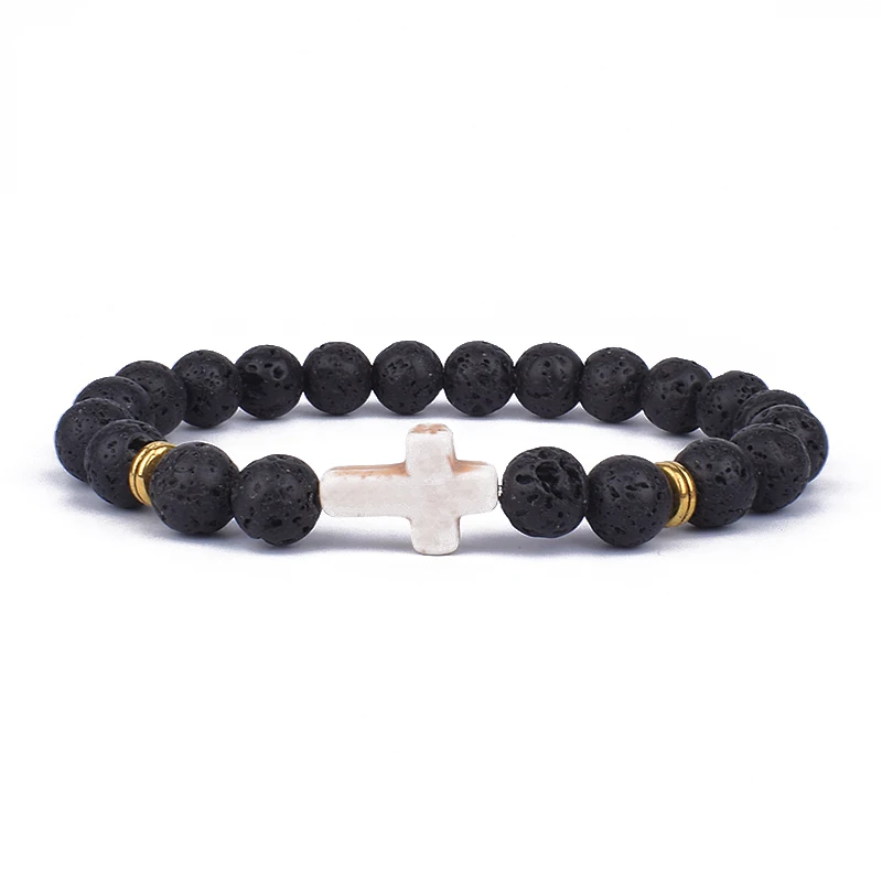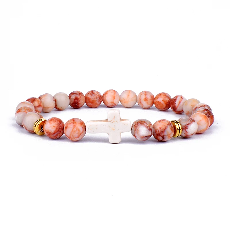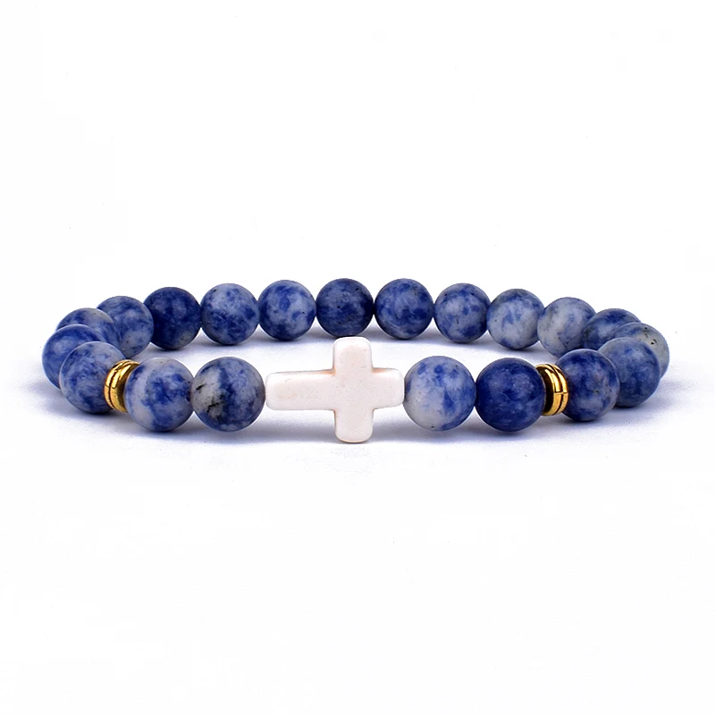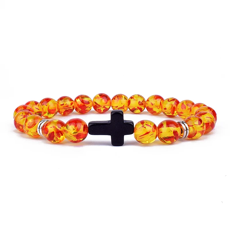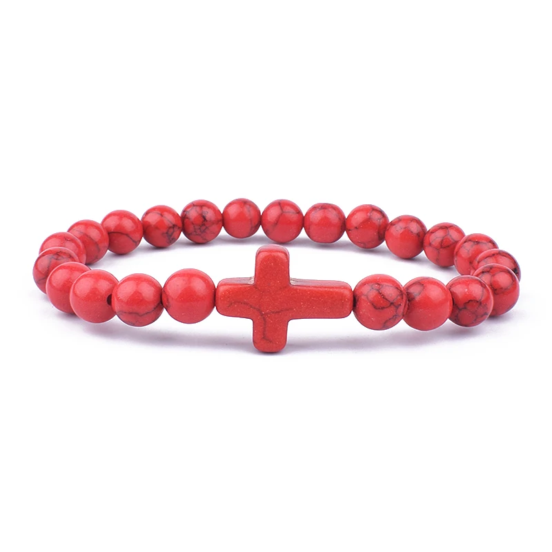 Модные мужские браслеты с подвесками в виде креста с Иисусом и искусственными камнями 8 мм, браслеты для женщин, ювелирные изделия для йоги