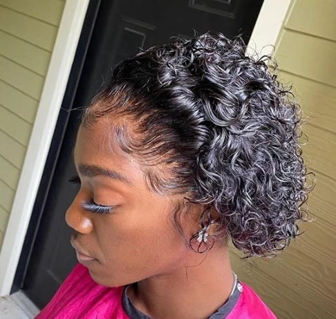 Кудрявый парикВьющиеся волосыКороткие вьющиеся человеческие волосыАфро кудрявый парик Гума...Парик с кудрявым кружевом спереди