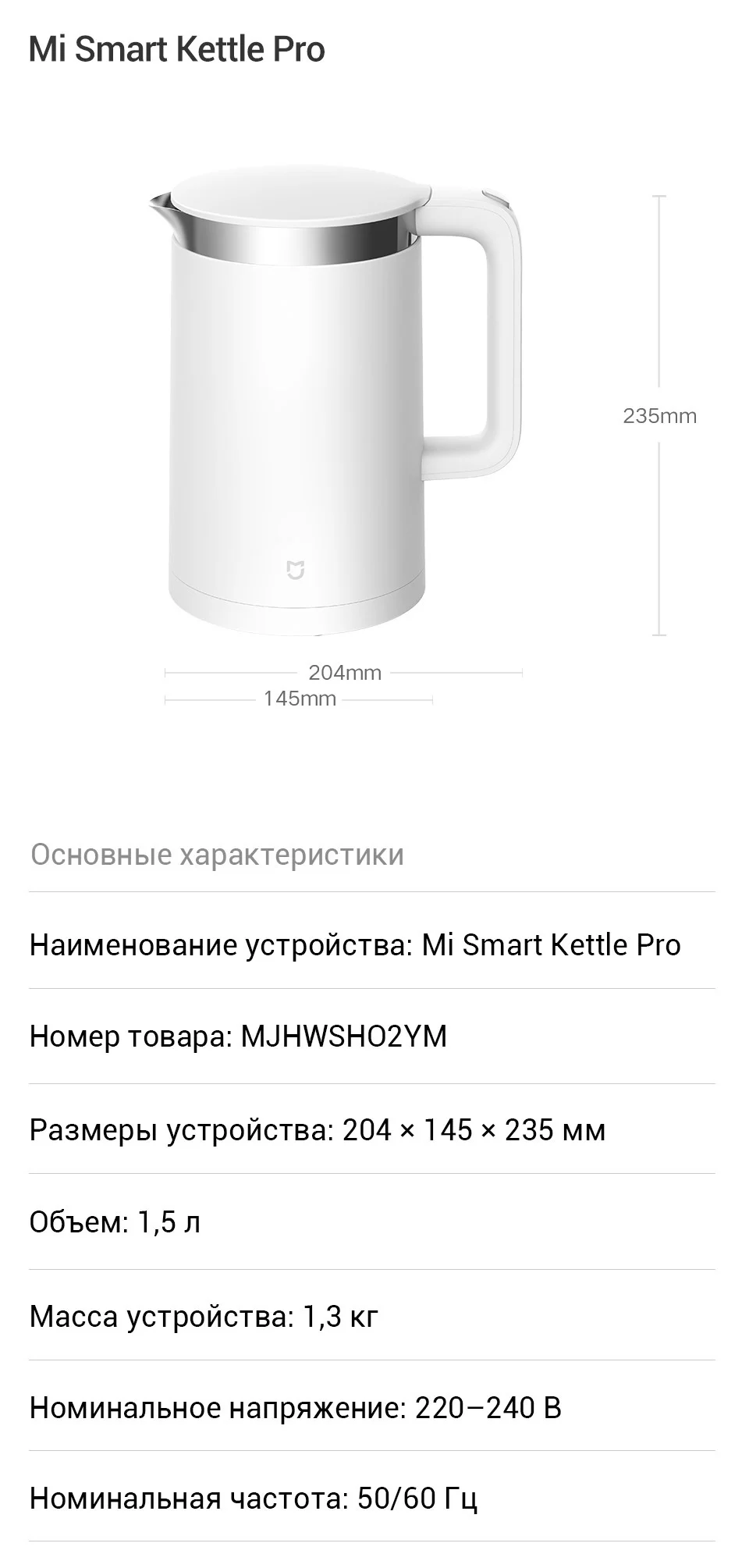 Электрический чайник Xiaomi Mi Smart Kettle Pro (Российская официал...