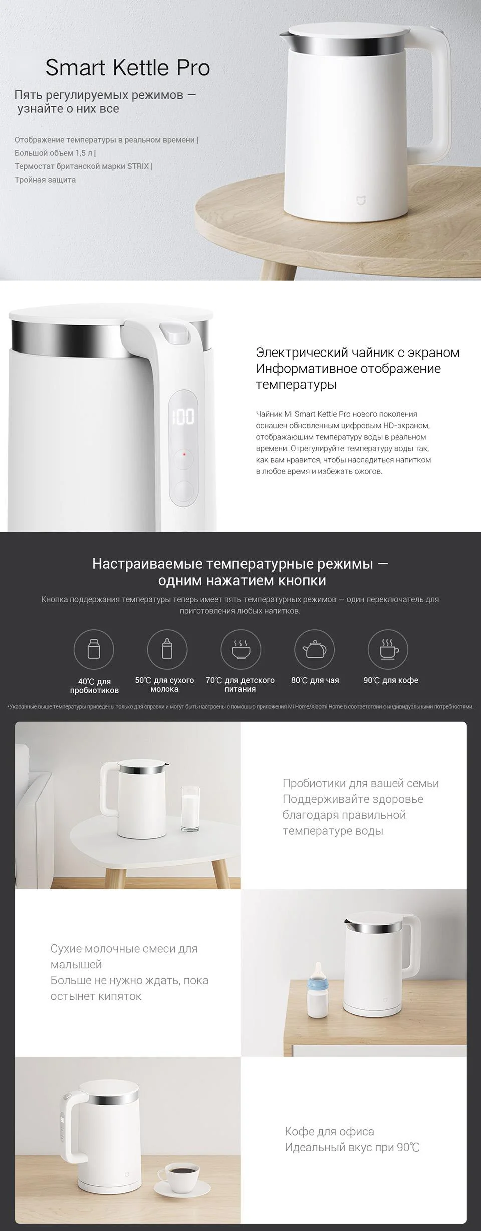 Чайник Xiaomi с термостатом Pro1.5L, умный Регулируемый чайник с 5 ...