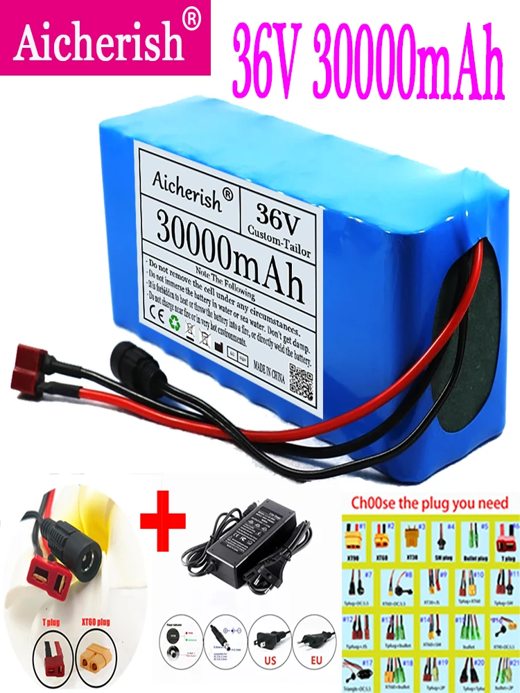 36V 30Ah E-велосипед со встроенным литий-ионным аккумулятором 30A BMS, аккумуляторы для электрического велосипеда, скутера, зарядное устройство 42V